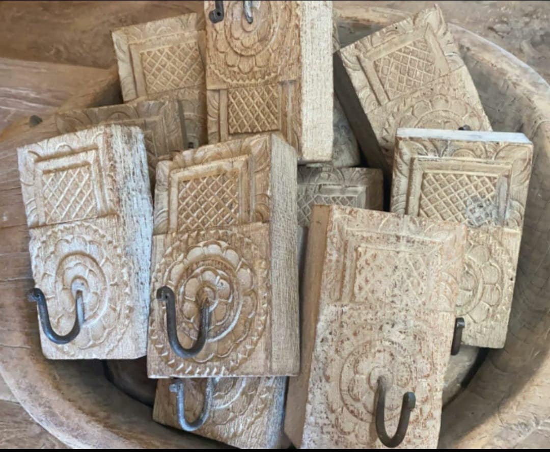 This antique Indian carved wall hook is made from solid wood and is hand carved. This rustic wooden ...