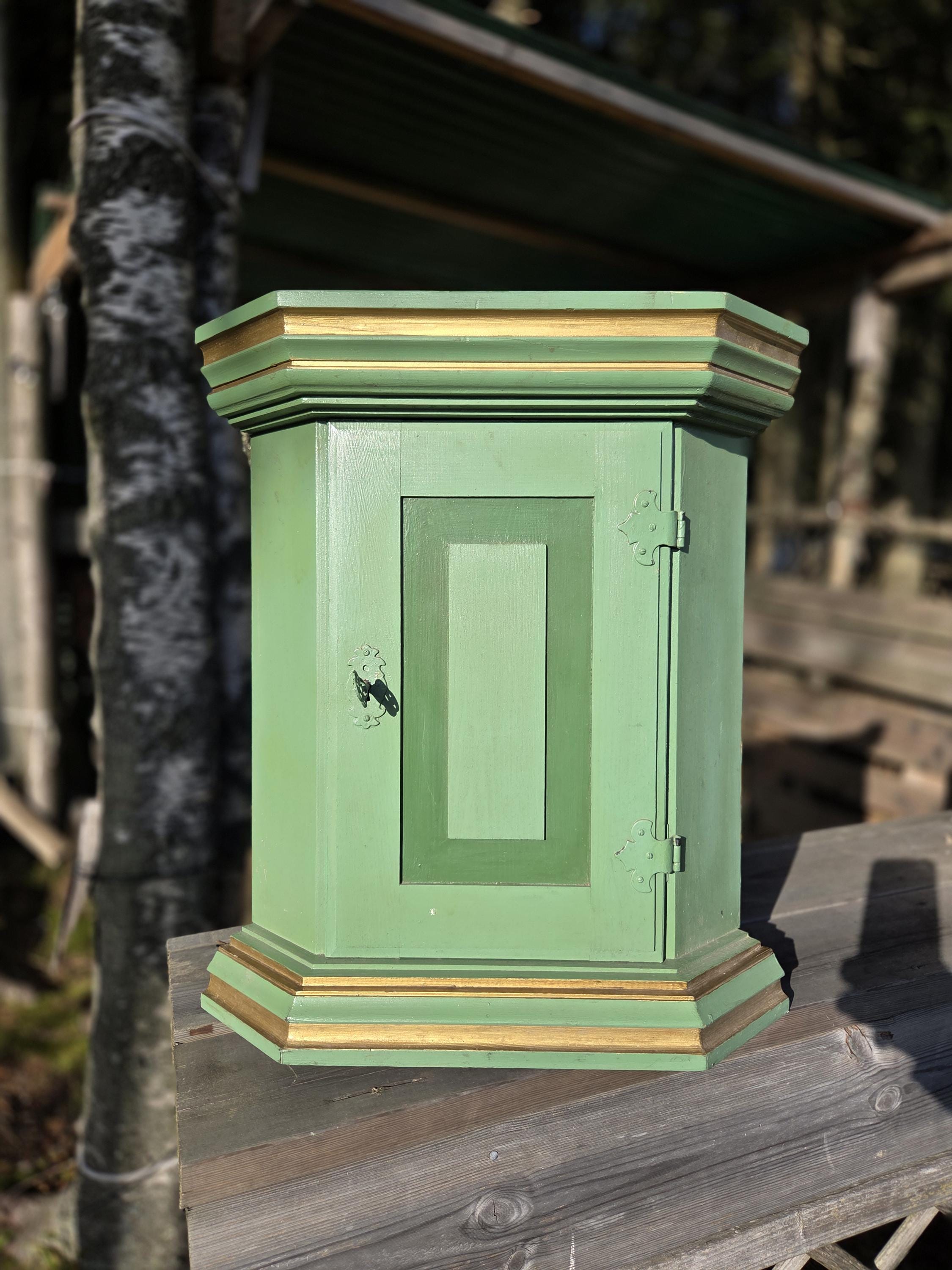 Norwegian Folk Art Cabinet | Vintage Corner Cabinet | Sage Green Sc...