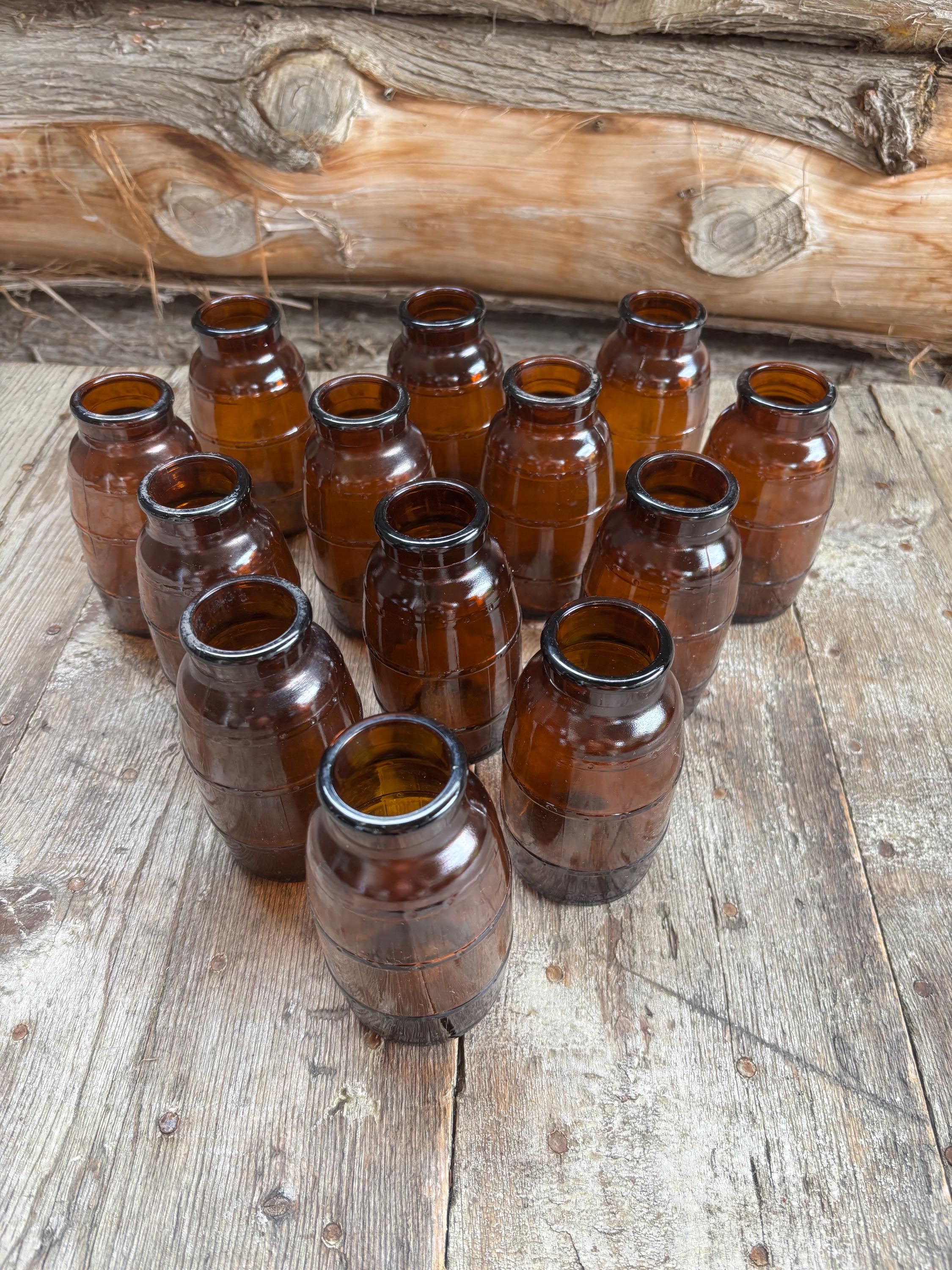 Vintage Brown Barrel Glass Bottle ~ Amber Glass Barrel Shape Beer Bottle ~ Barrel Shape Wide Mouth B...