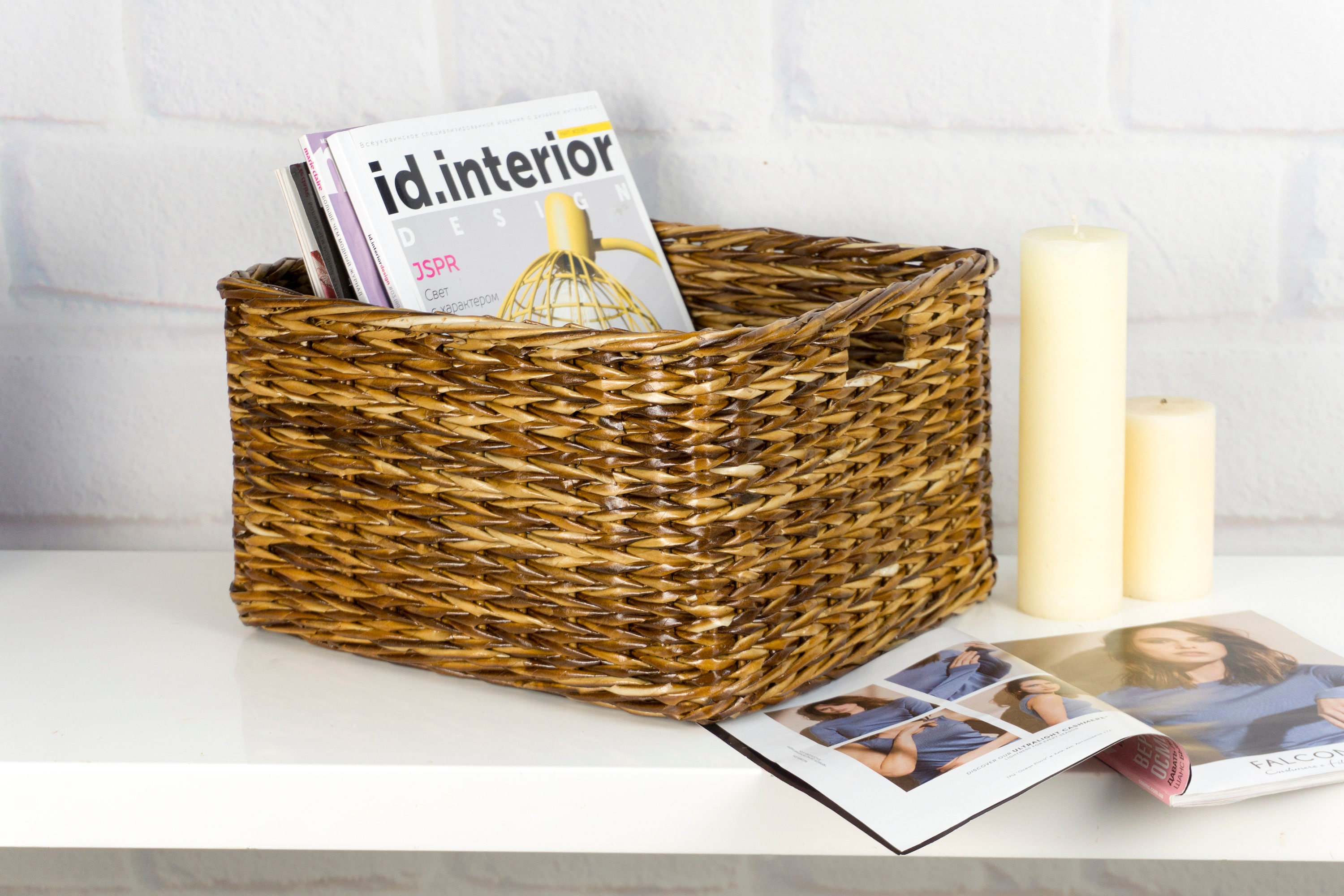 Wicker basket bin brown color with label for storage and organize home stuff. Personalization basket...