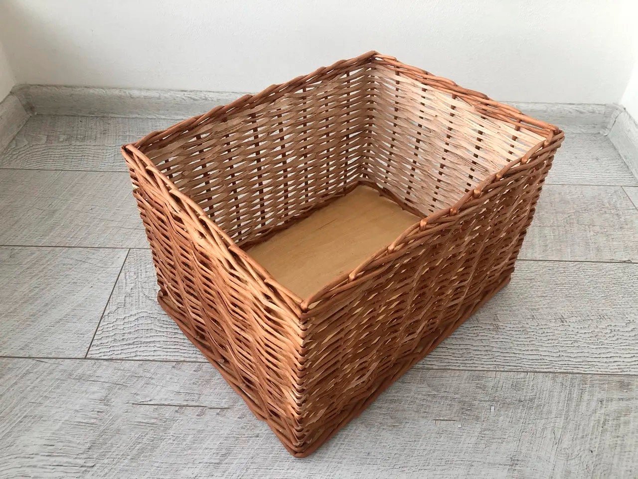 Wicker storage basket, Large rectangular basket, Rattan storage bas...