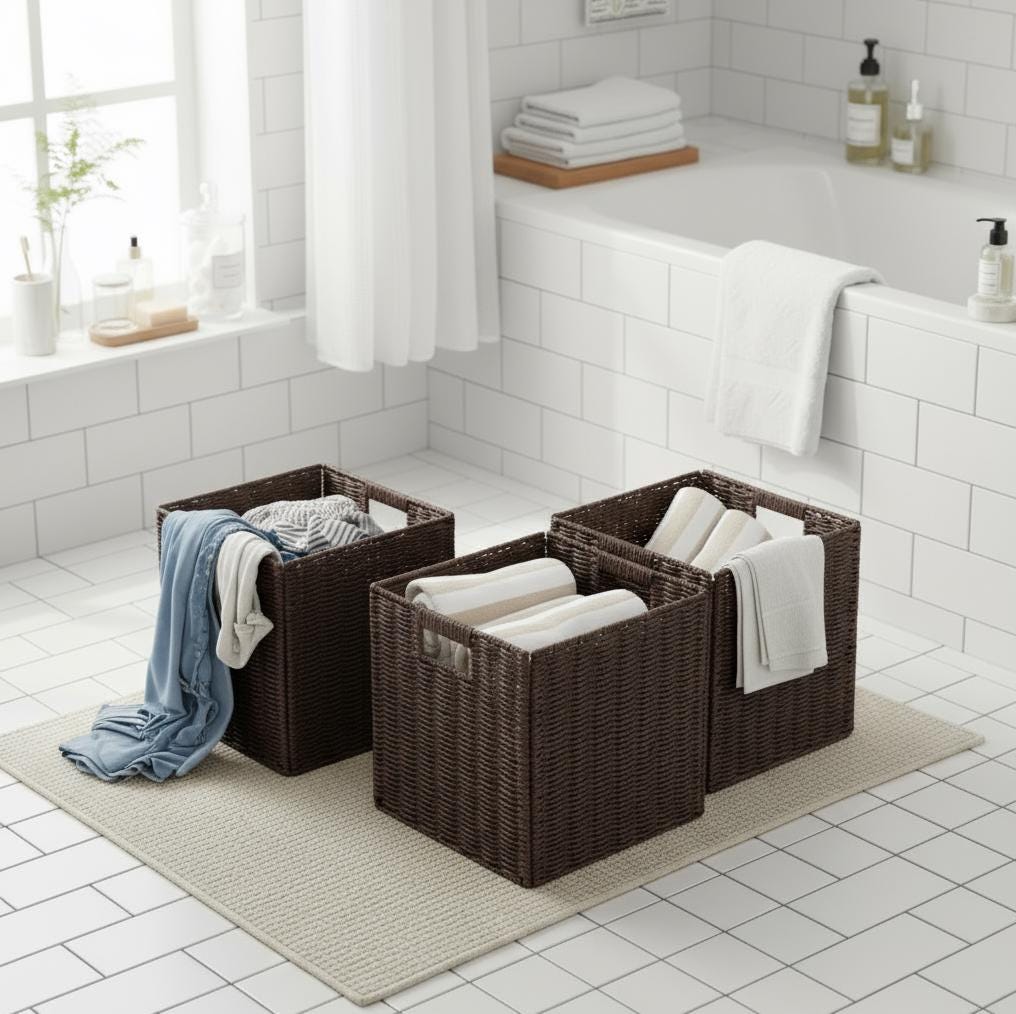 Woven Square Storage Basket - Rustic Wicker Organizer for Any Room Keep your home neat and beautiful...
