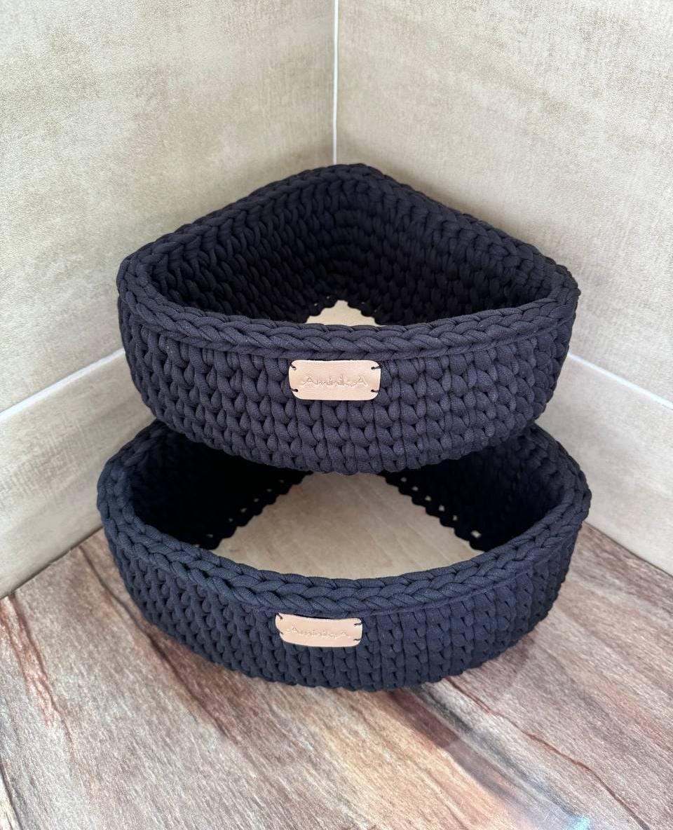 Black crochet shelf basket, entryway organizer, countertop storage ...