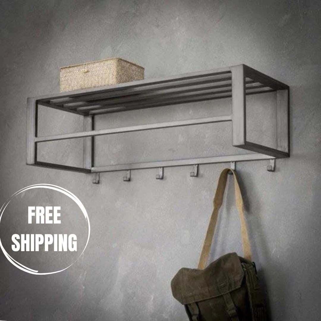ENTRYWAY WALL MOUNTED COAT RACK with HOOKS for HOME INTERIOR! wall mounted coat rack - metal shelf -...