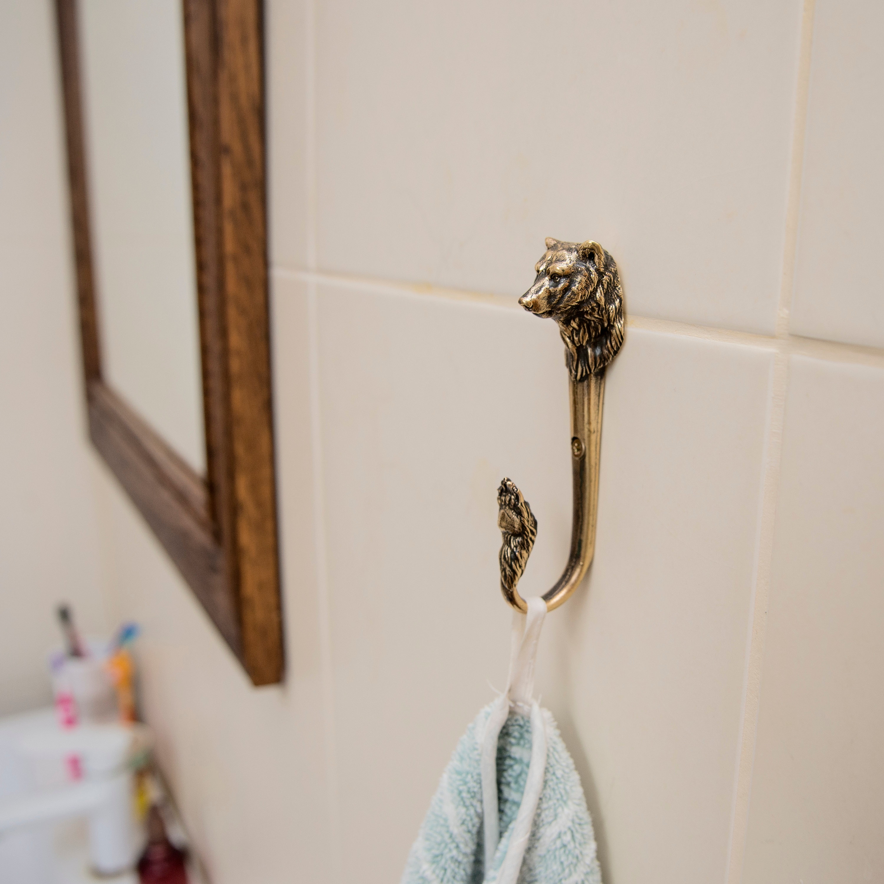 Brass Bear Head Wall Hook,Decorative Hooks, Brass hook,Coat Hook, T...