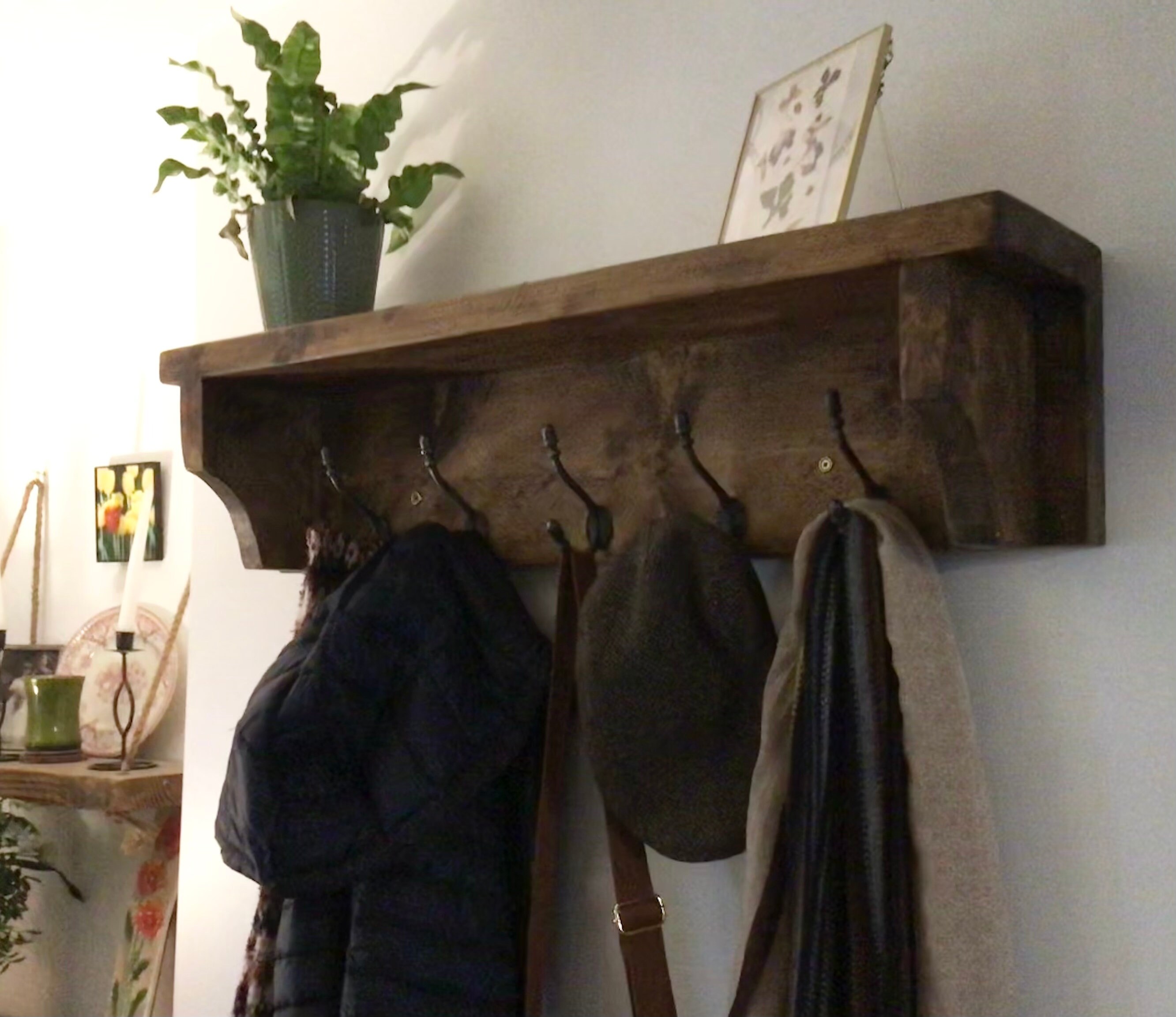 Handmade coat and hook rack Vintage cast iron coat hooks and shelf ...