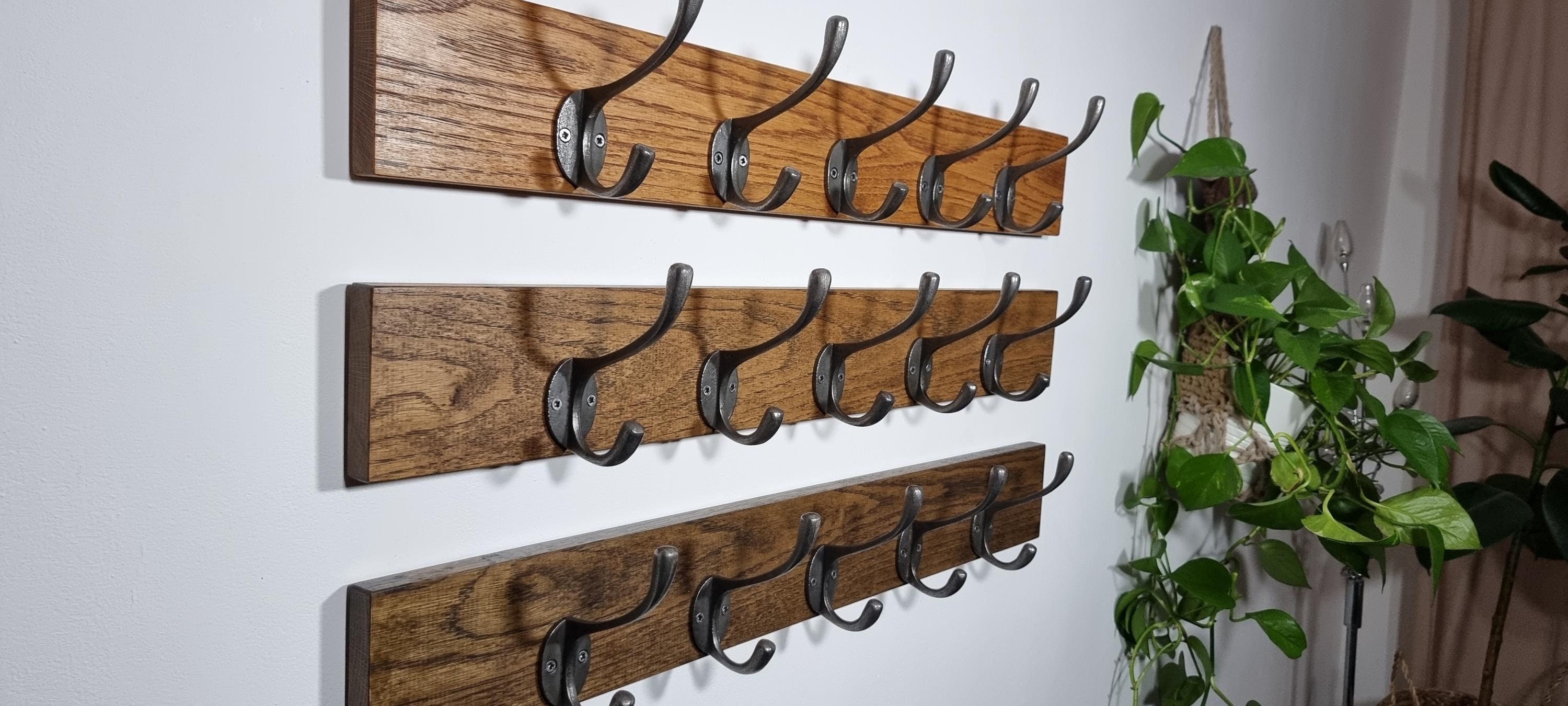 These coat racks made from real natural solid oak and large cast iron hooks can be perfect finishing...