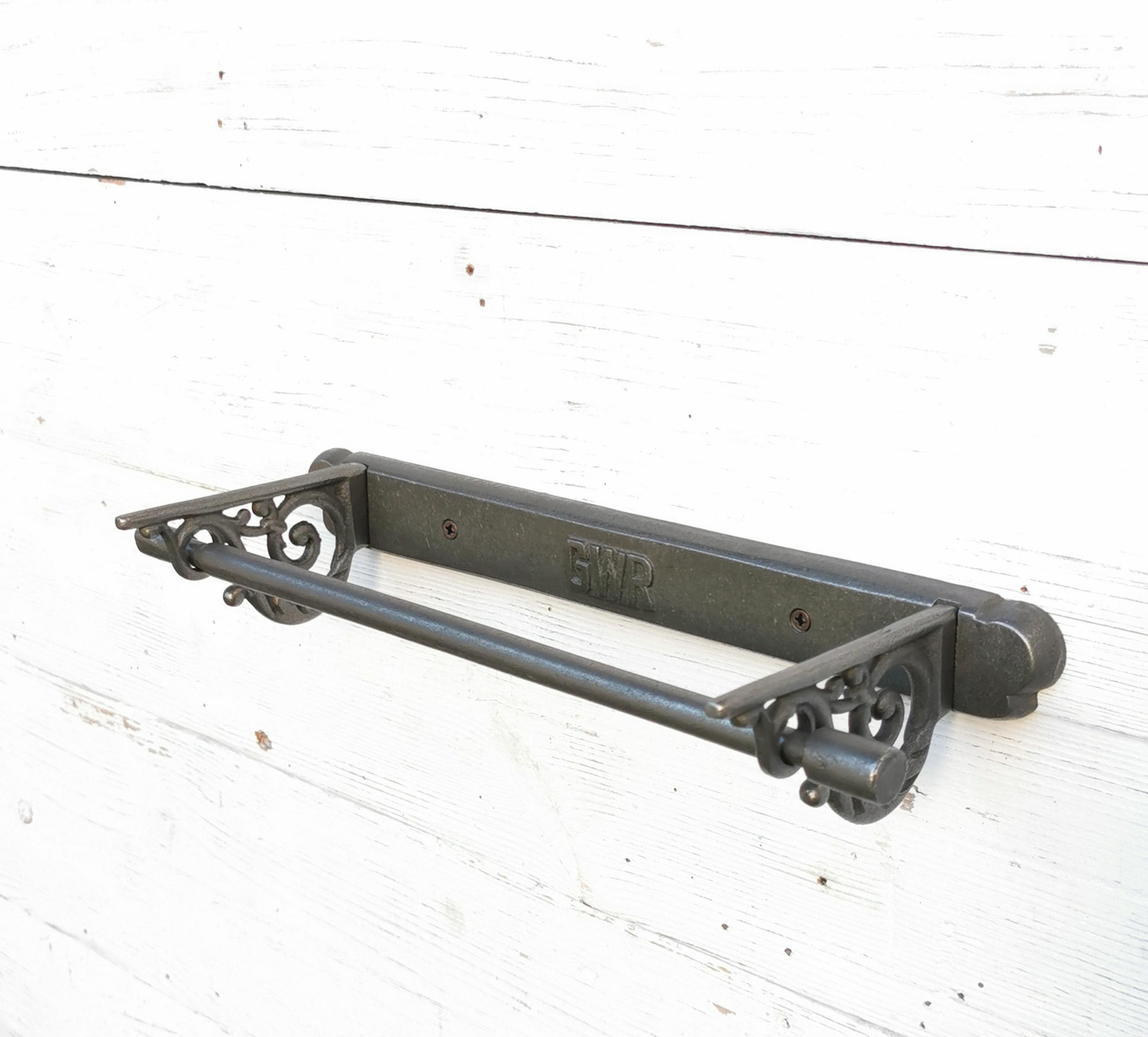 A beautiful accessory for your kitchen. Cast antique iron wall-mounted kitchen roll holder with GWR ...