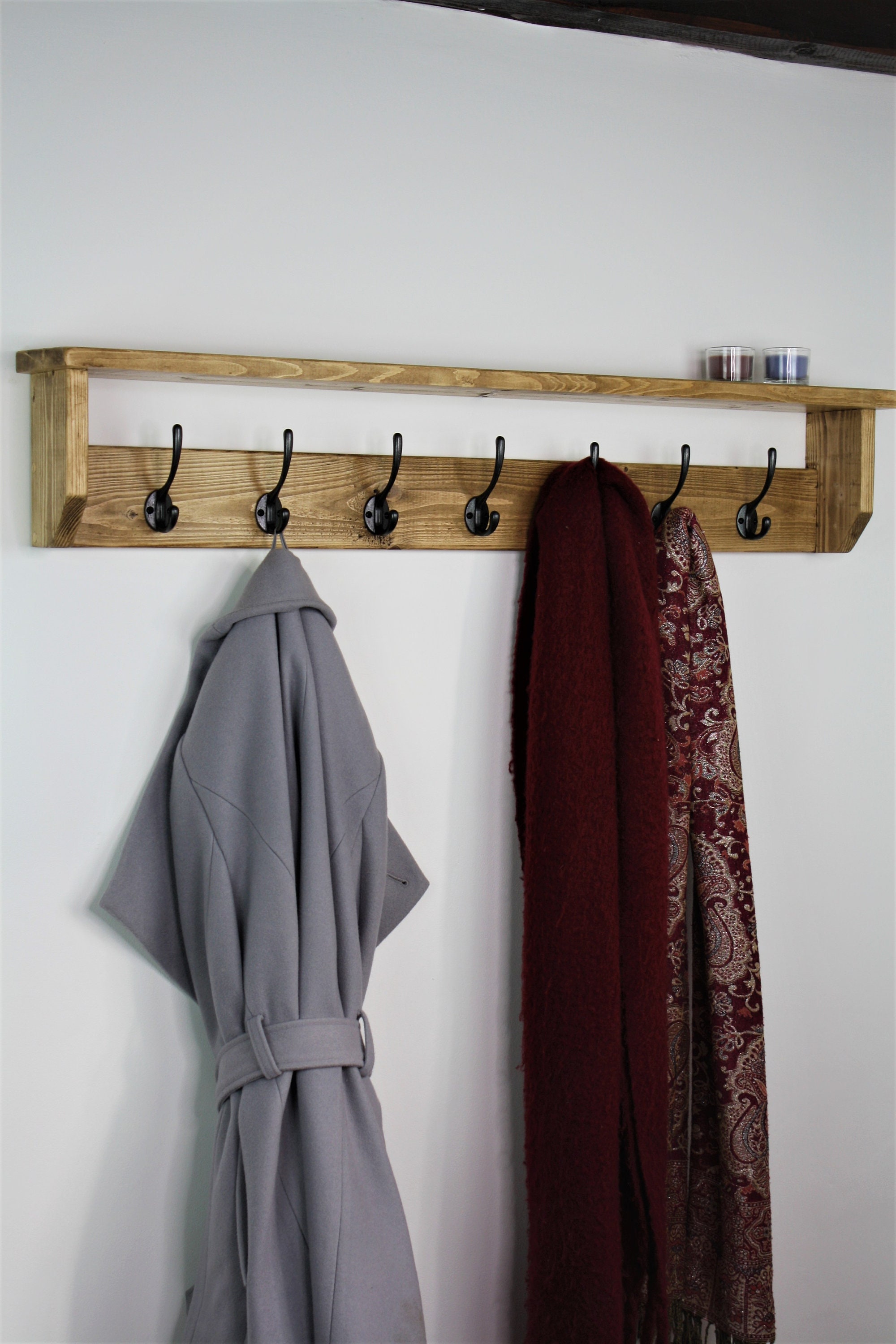 UK Handmade Solid Oak Wood Rustic Wooden Wall Mounted Hat and Coat ...