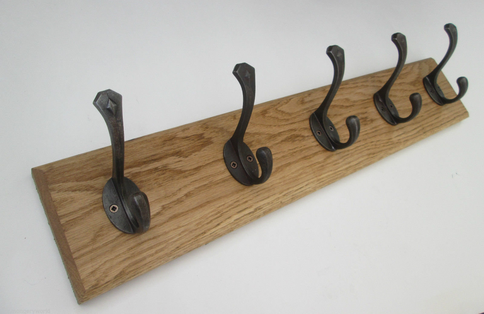This listing is for a handmade solid oak wooden wall mounted rack, with cast iron hooks. Solid Oak h...