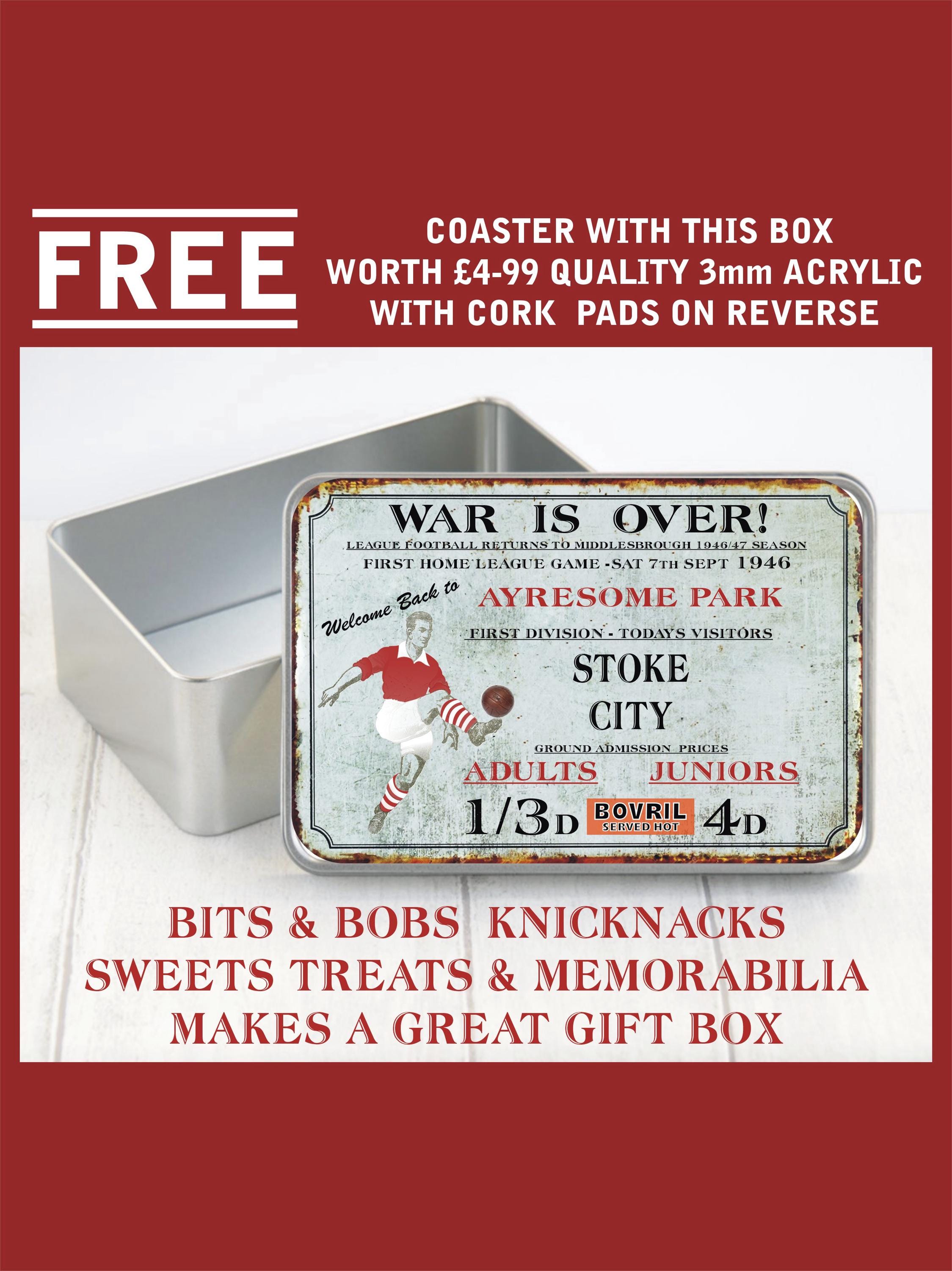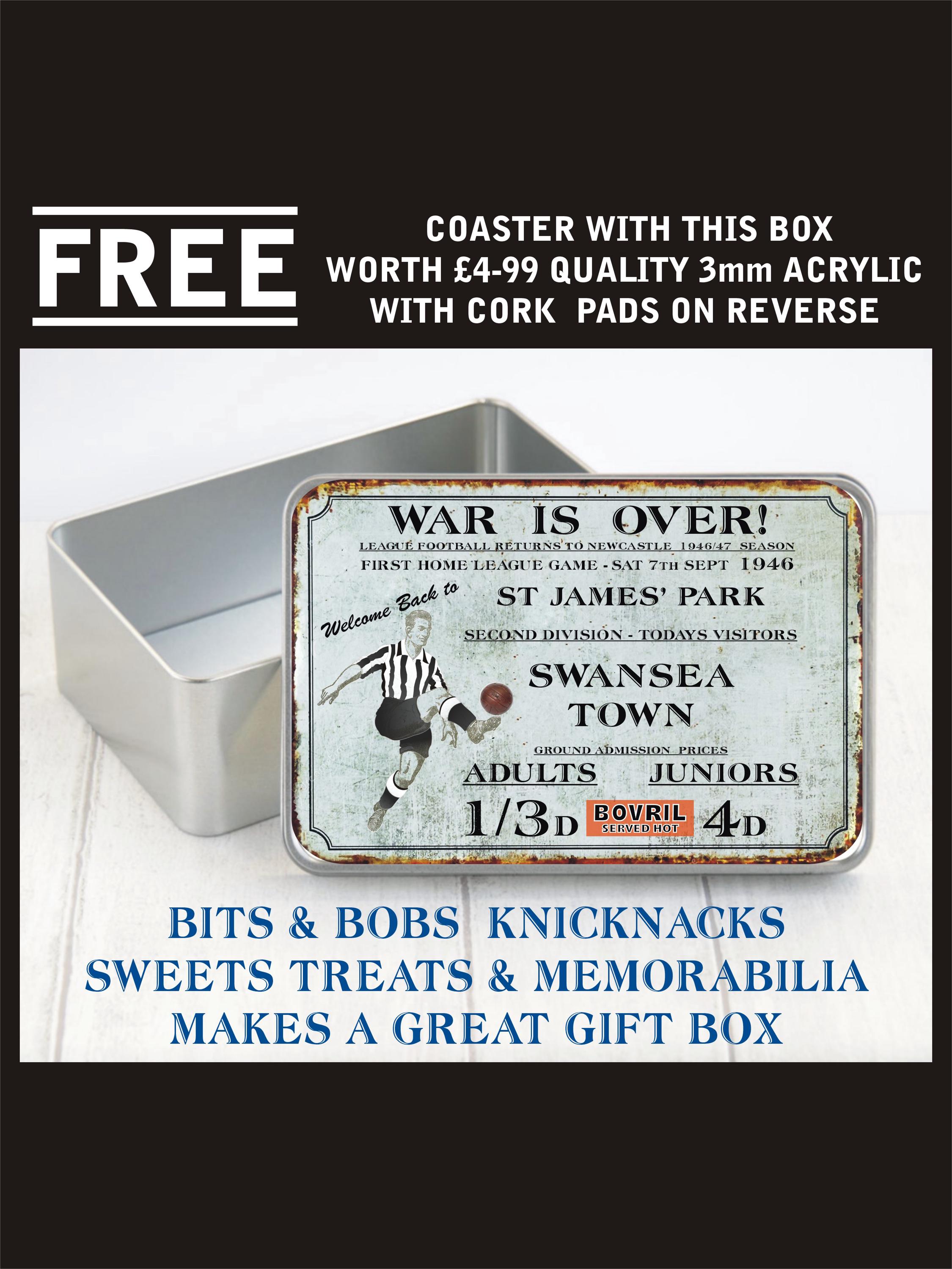 FREE CLUB COASTER WORTH £4.99 WITH EVERY TIN BOX ORDERED. THESE ARE TOP QUALITY 3MM ACRYLIC CO...