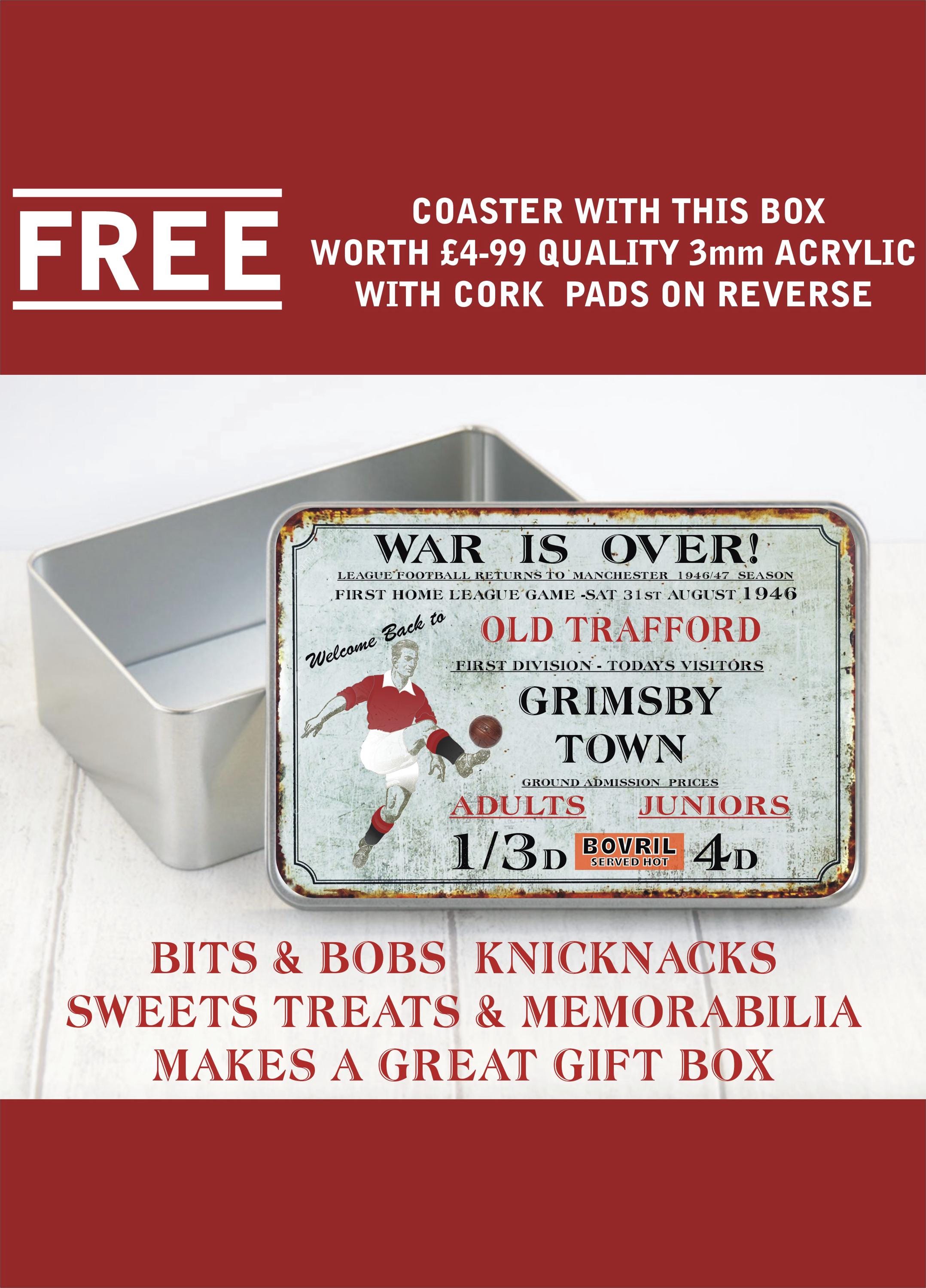 Vintage Style Tin Metal Box Old Trafford Man United print poster mu...