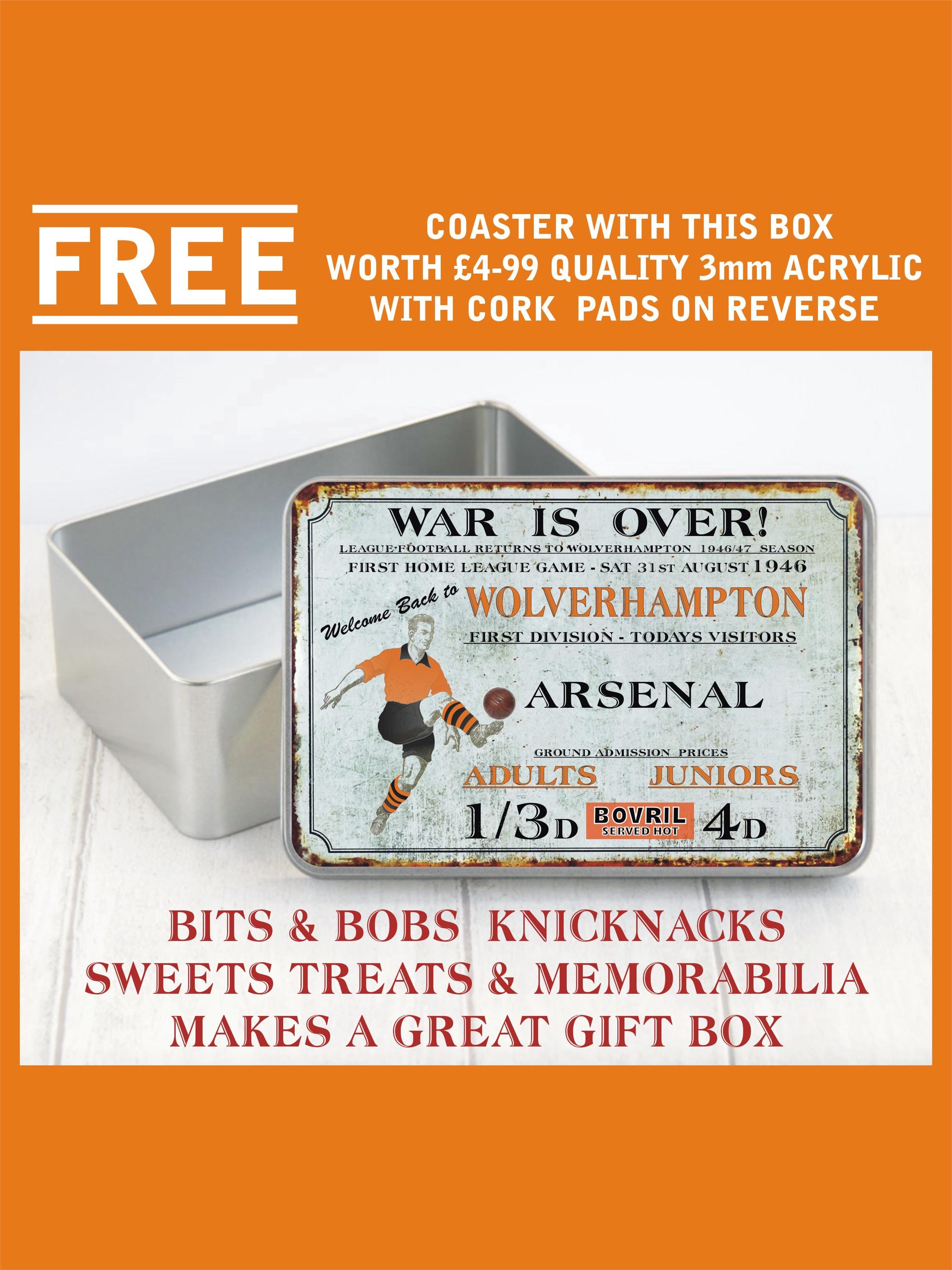 Wolverhampton Wanderers fc Vintage Style Tin Metal Box Molineux Wol...