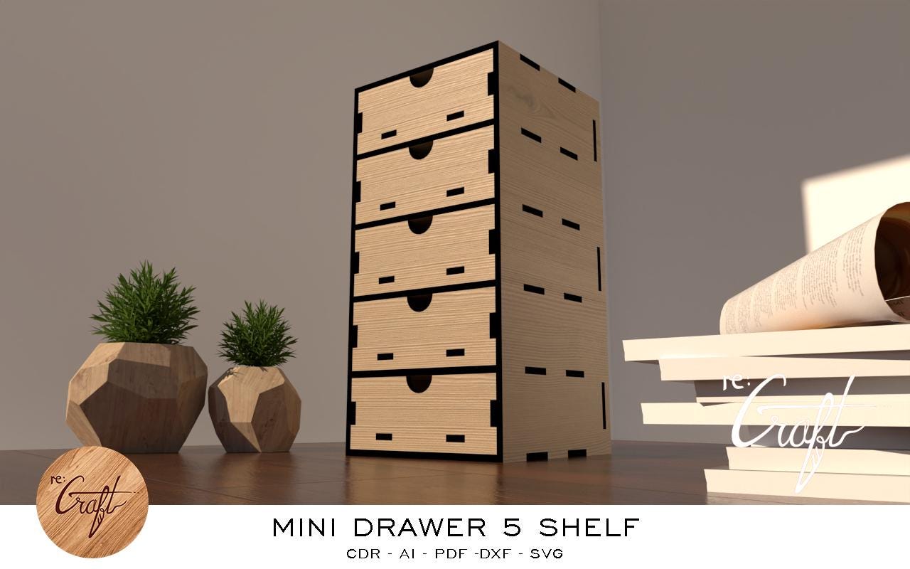 Laser Cut Small Desk Organizer 5 Drawers NOTE : THIS IS DIGITAL FILE FOR LASER CUTTING NOT PHYSICAL ...