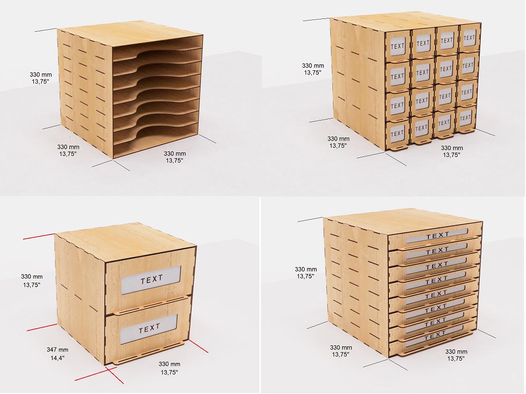 Set of 12 Chest of drawers Laser cut files * Desk organisers set * ...
