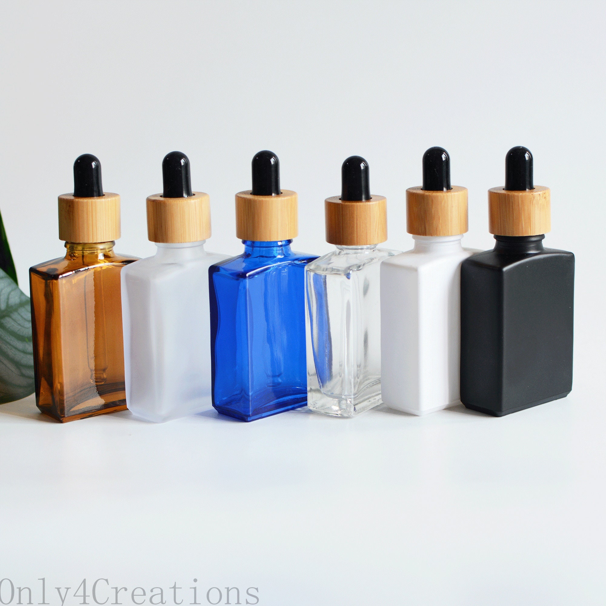 1-200pcs 30ml 1oz Square Essential Oil Dropper Bottle with Bamboo T...