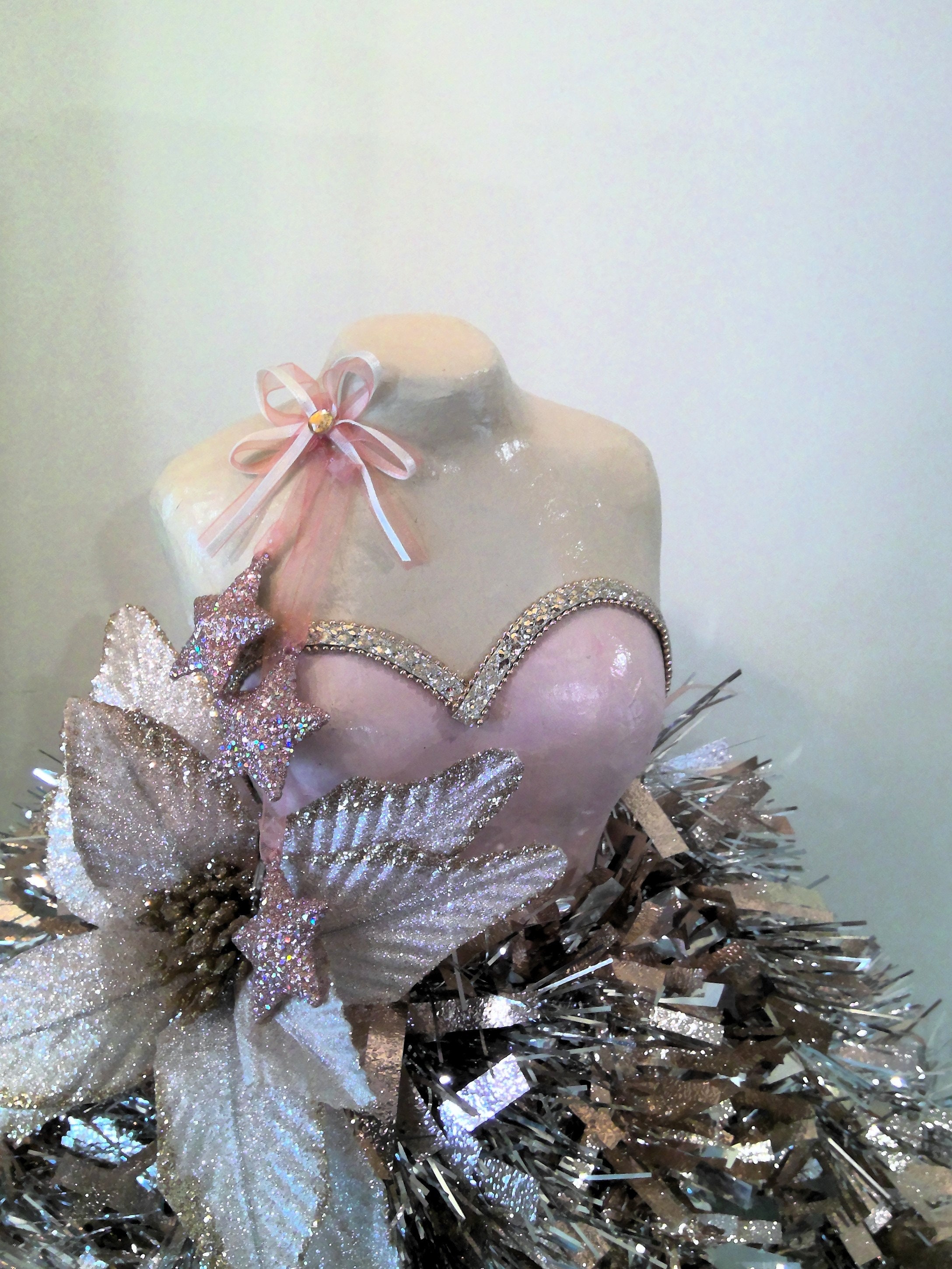 Blush Vintage Christmas Mannequin Tree, Tinsel Garland, Christmas T...