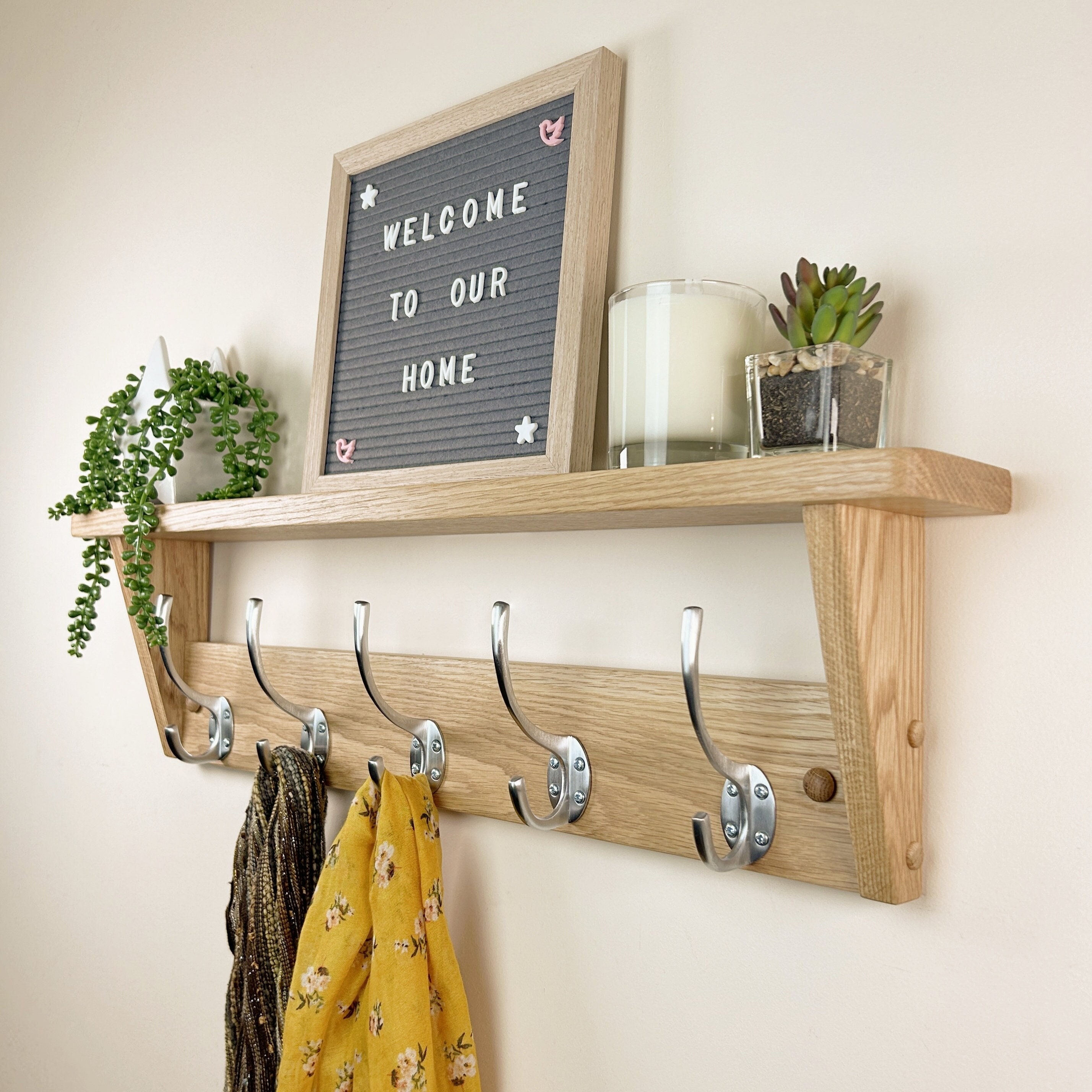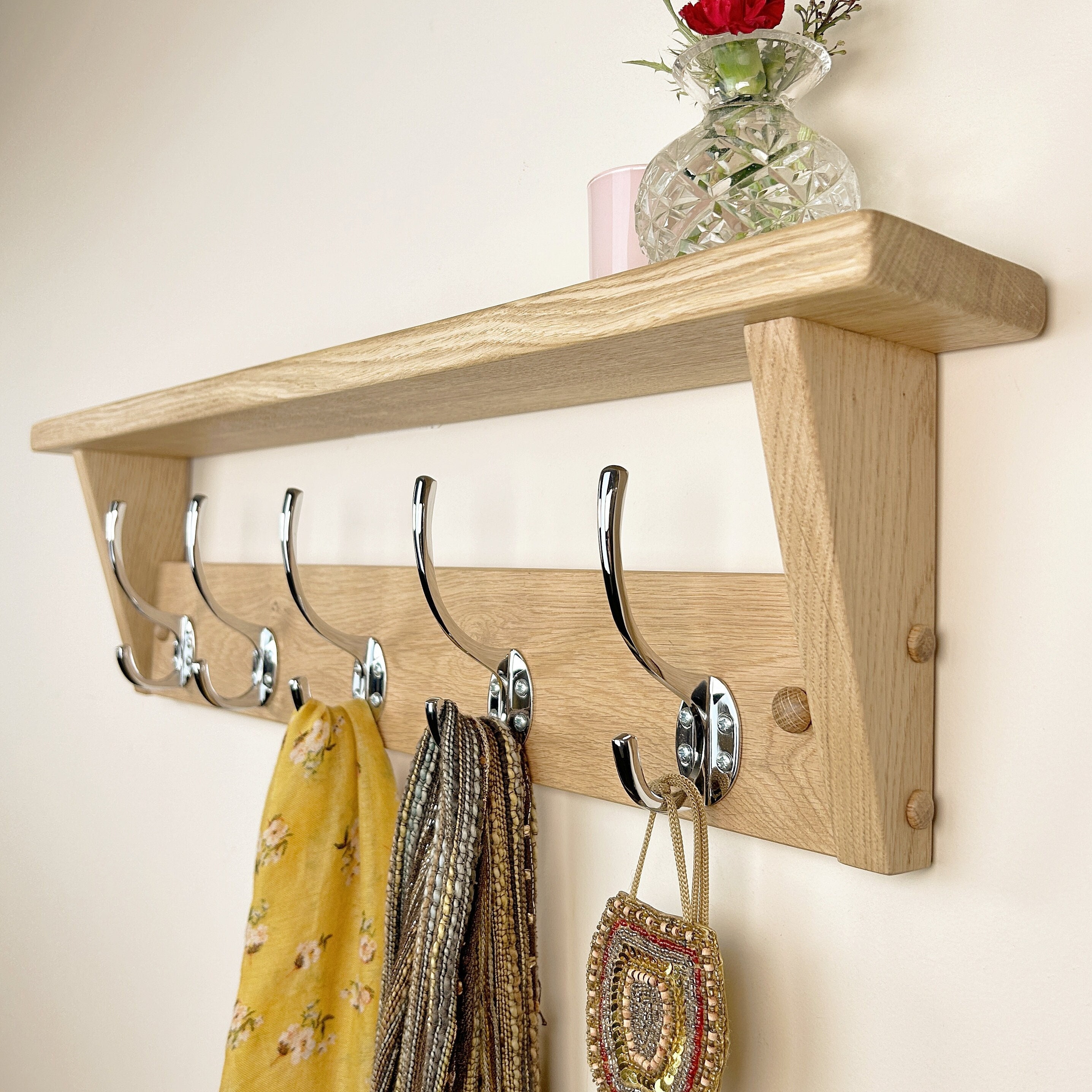 Coat Rack with Shelf Chrome Triple Hooks Country Cottage Solid Oak Handmade Contemporary Introducing...