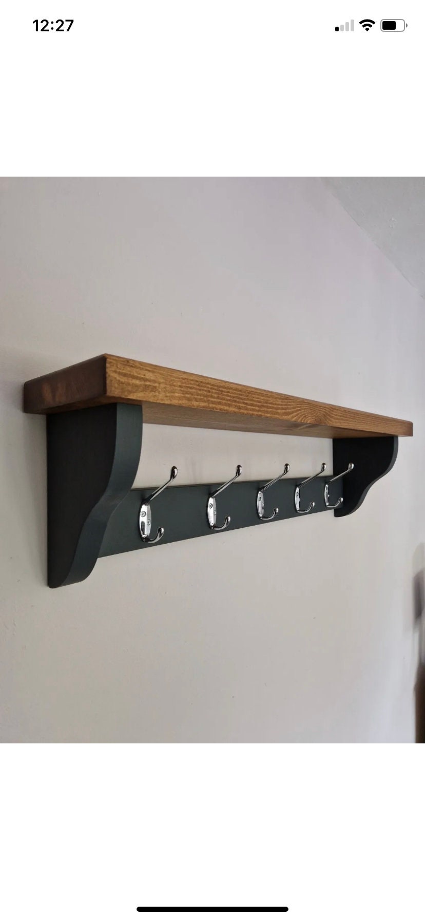 Coat Rack with Shelf Rustic Handmade 5 Double Hooks Also available in Farrow & Ball Pavillian Gr...