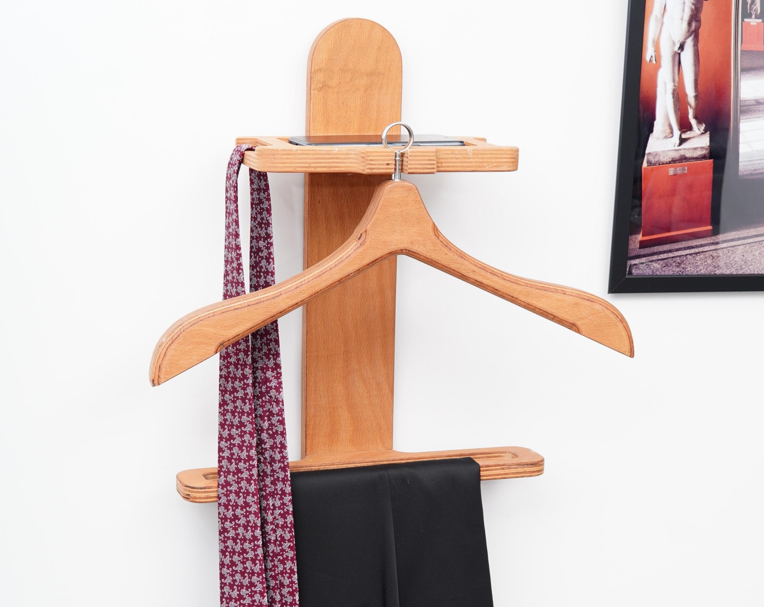 If you're searching for a stylish and practical wall-mounted clothes rack, this handcrafted wood han...