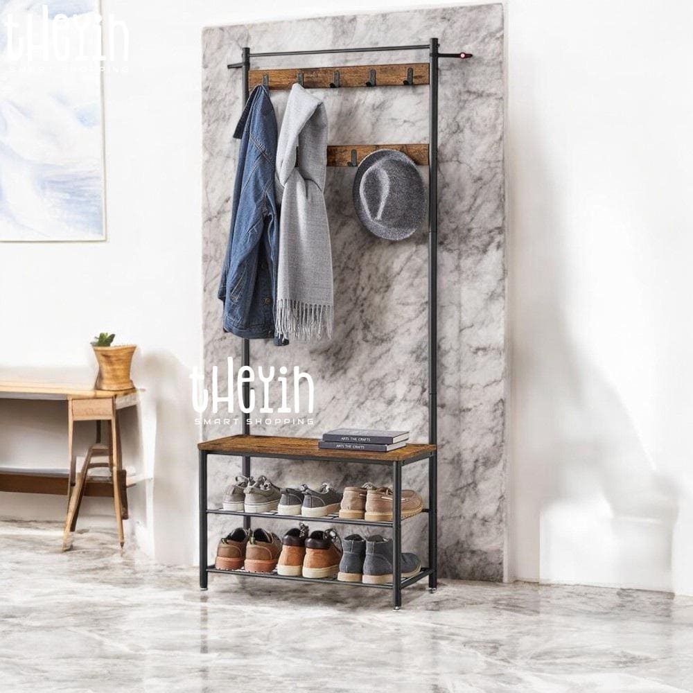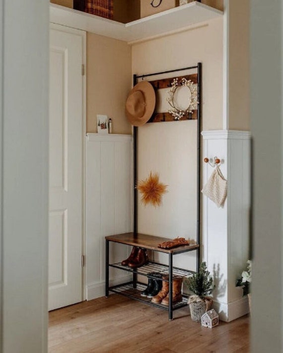 Industrial Coat Rack, Hallway Coat Rack, Coat Rack With Shoe Bench,...