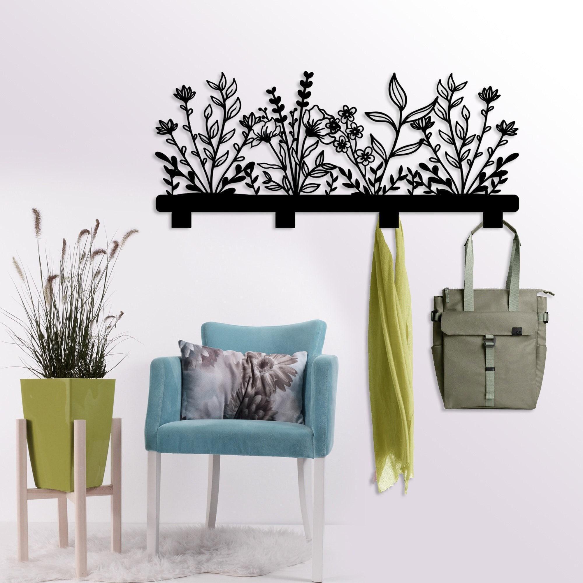 Wall Mounted Coat Rack with Flowers, Entryway Metal Coat Rack, Coat...