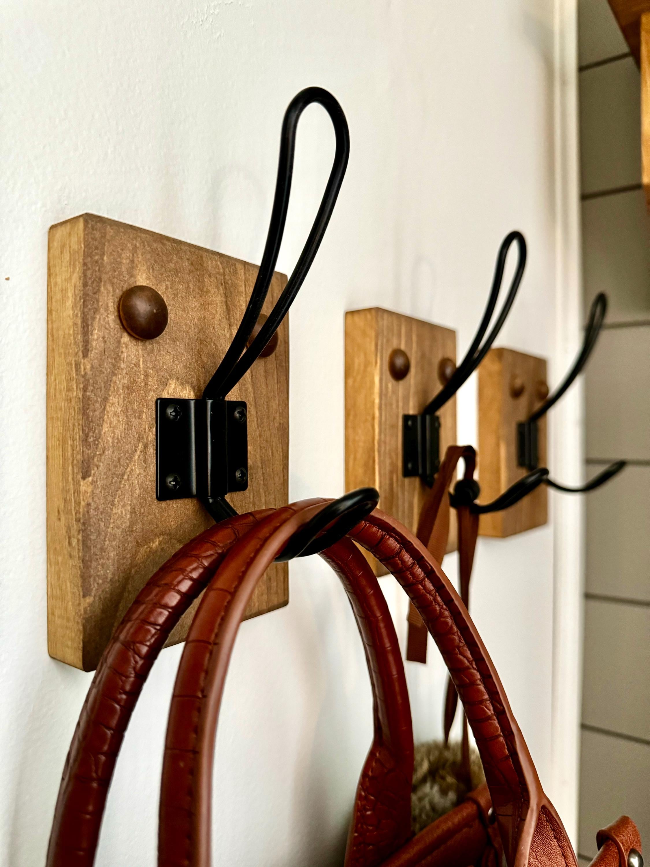 Single coat hook on wood block, metal coat hook, wall mounted coat ...