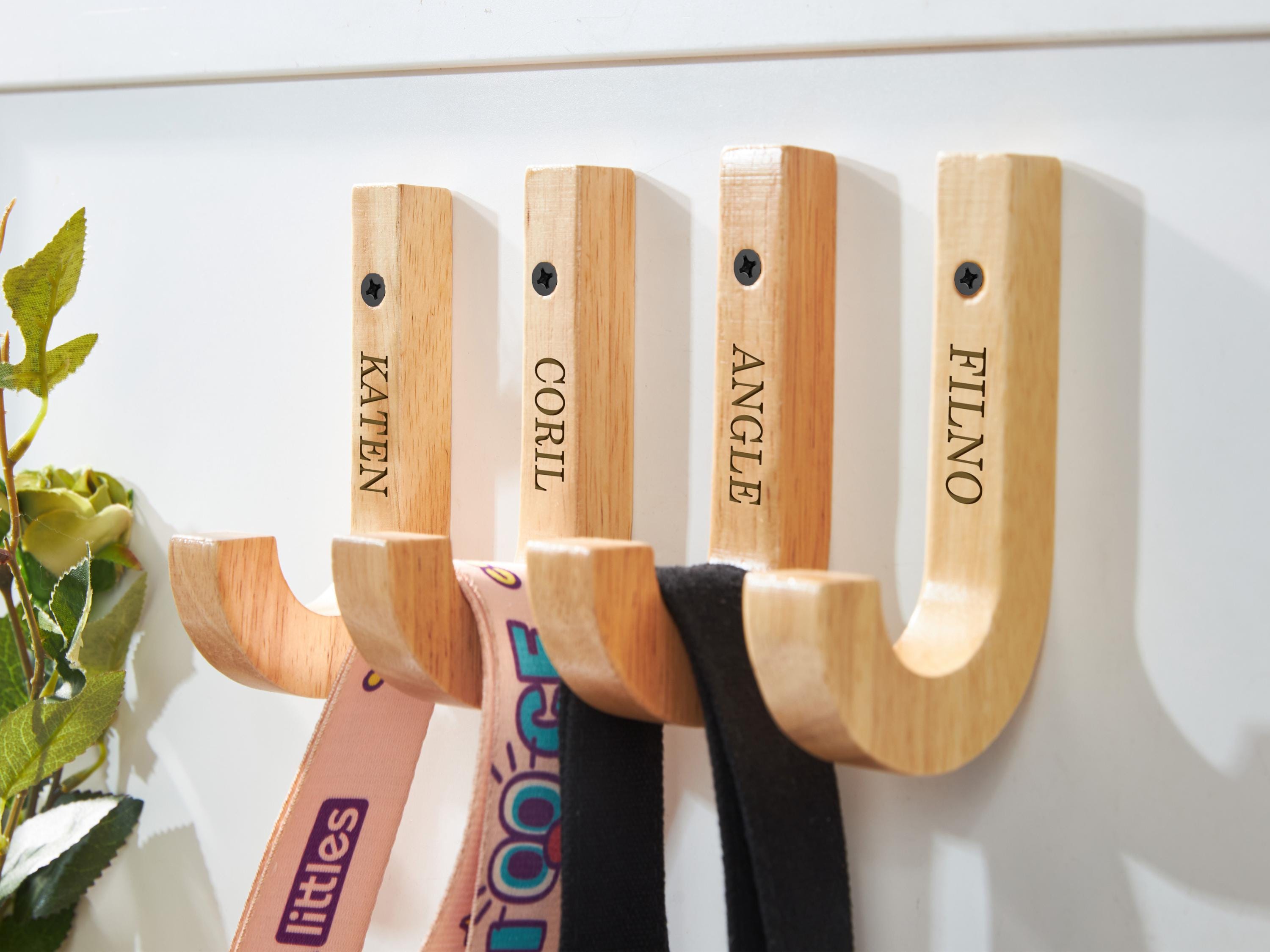 Personalized Wooden Wall Hooks, Natural Oak Wood Wall Hooks, Coat H...