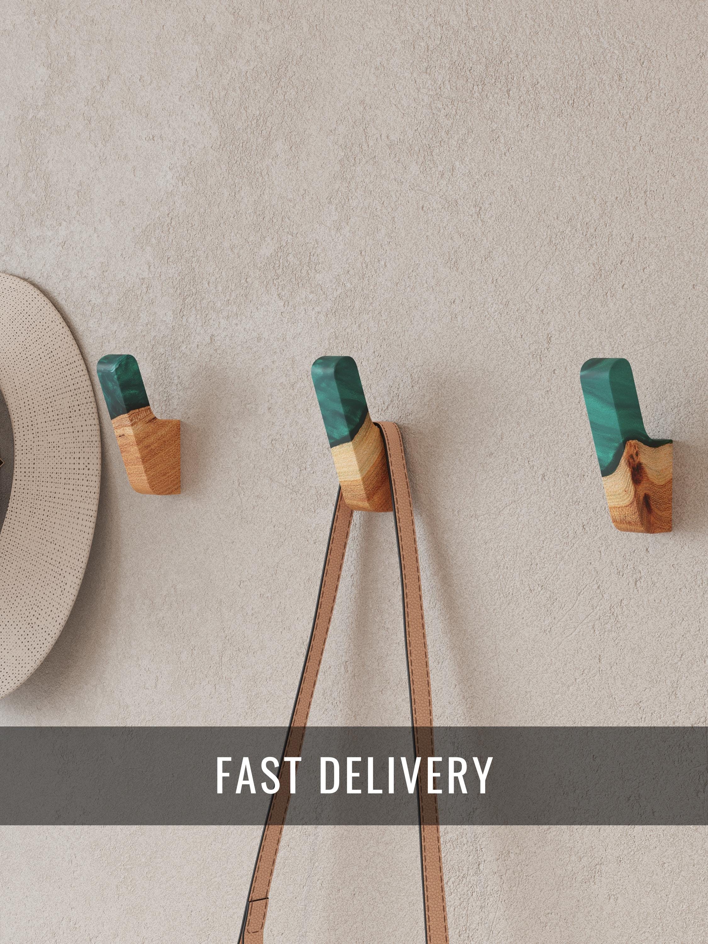 Decorative Wall Hooks made from epoxy & natural wood - Green co...