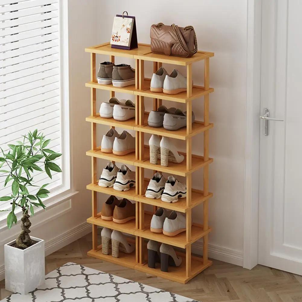 7 Tiers Vertical Shoe Rack, Wood Narrow Shoe Rack, Space Saving Cor...