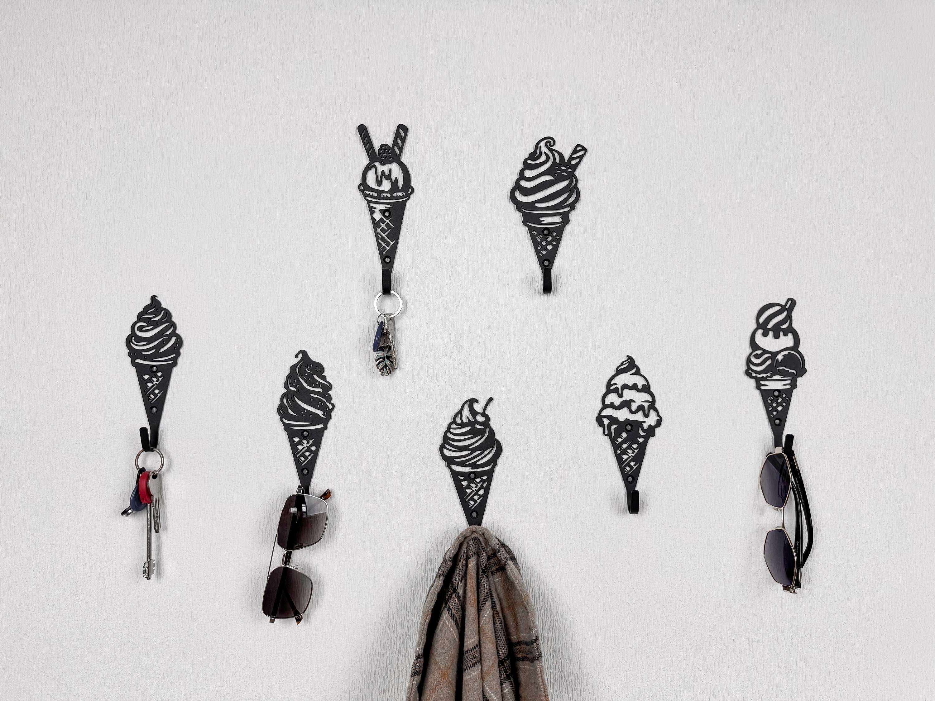 Unique ice cream wall hook set, nursery decor, wall hooks, ice crea...