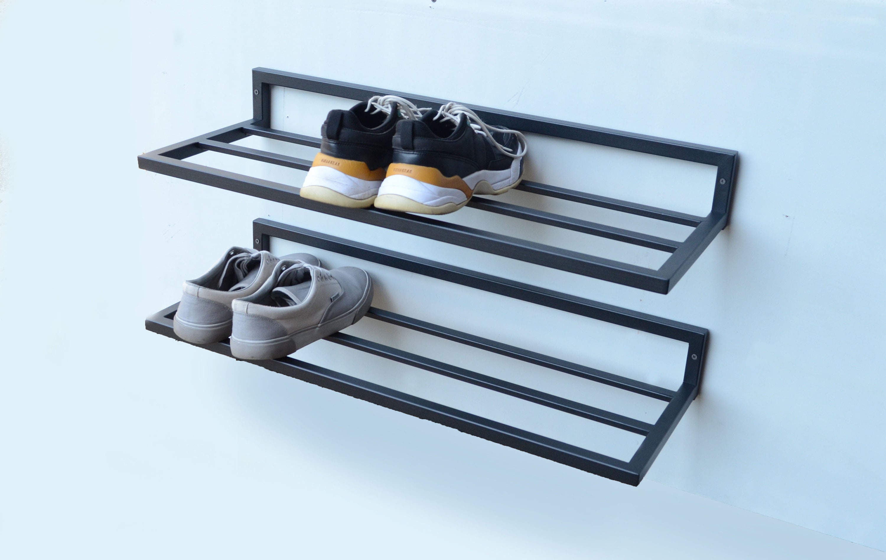 Entryway 2 set open shoe shelf Wall mount metal shoe rack Industria...