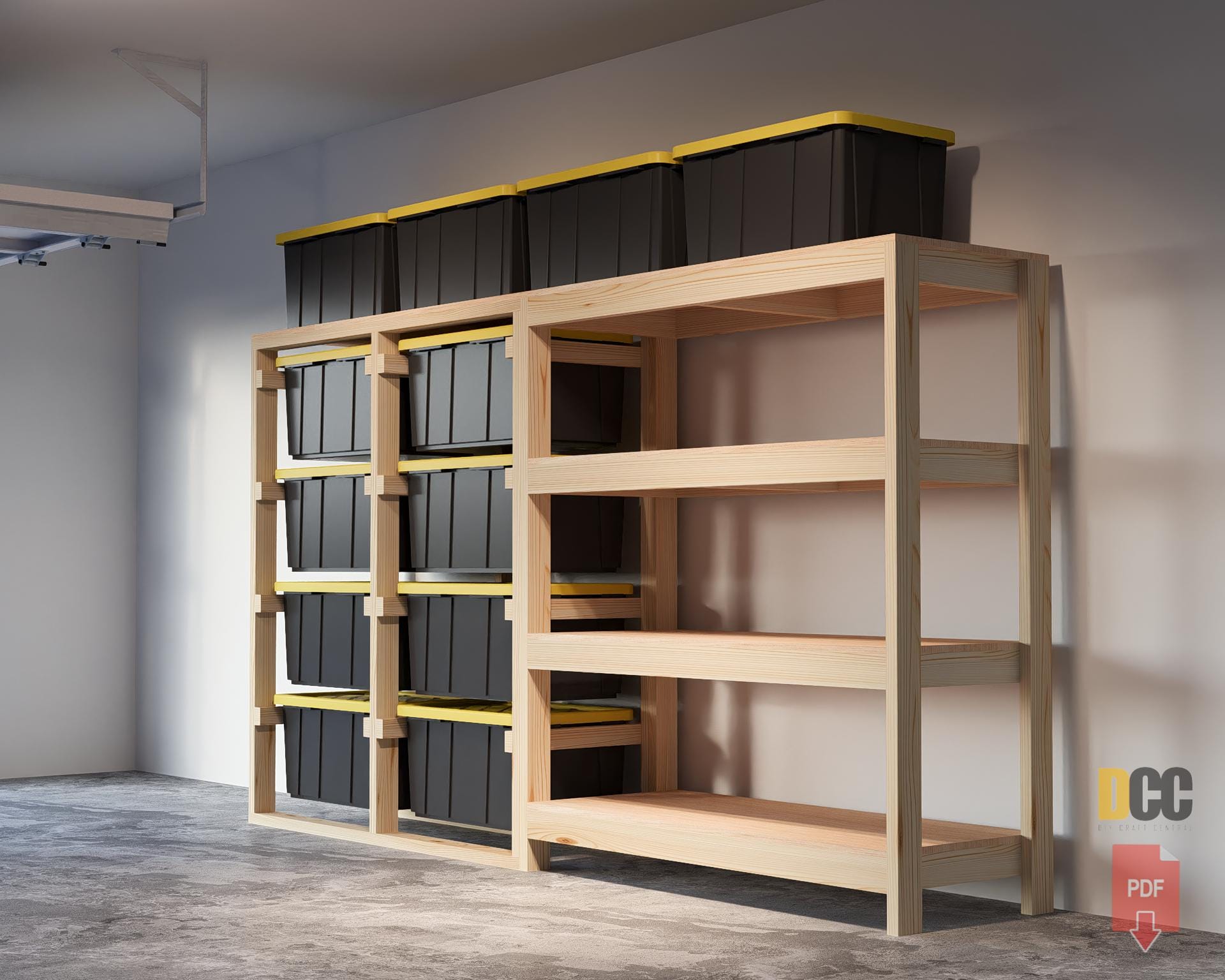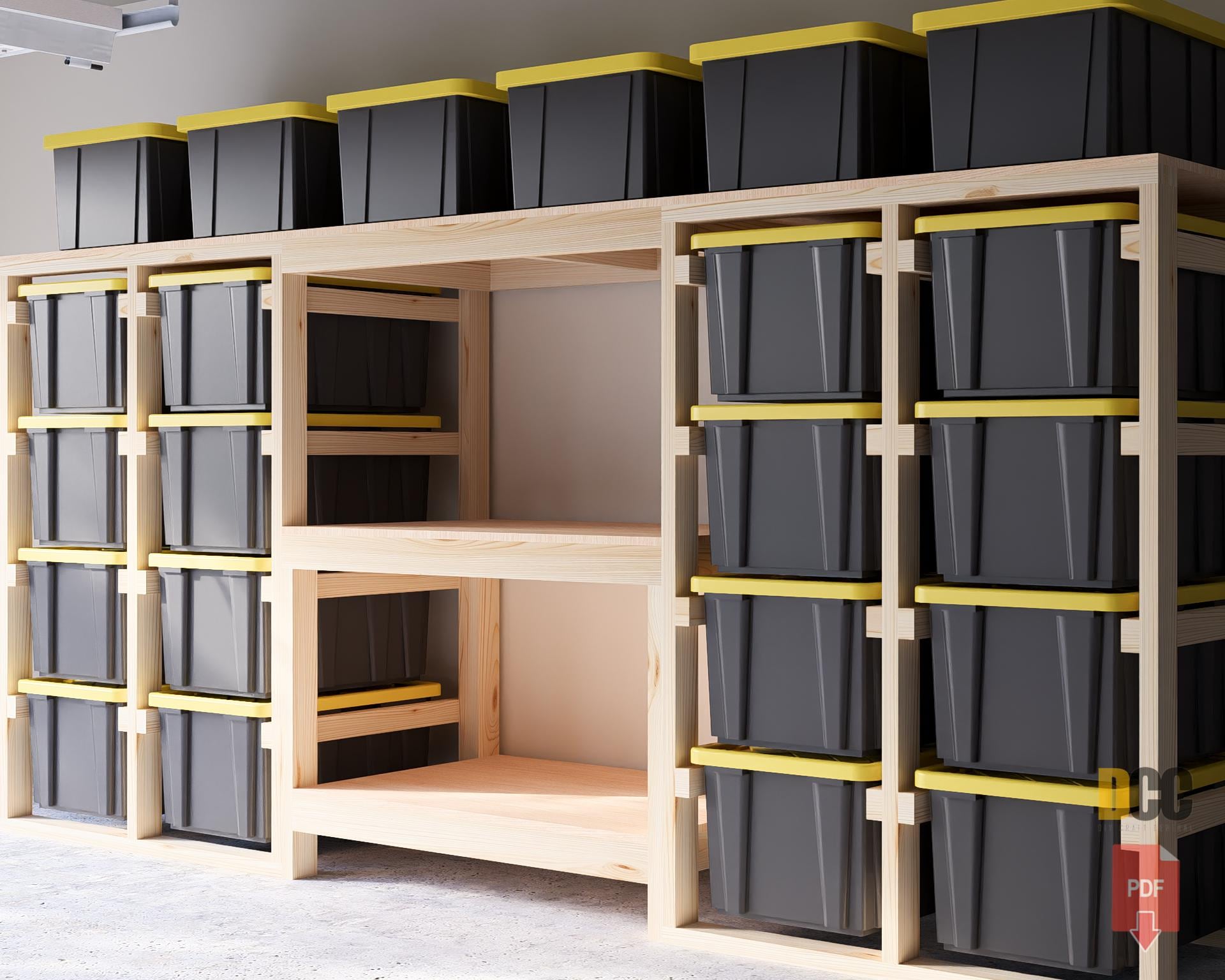 "DIGITAL DOWNLOAD ONLY Tote Garage Shelves for 27 Gallon Tote Storage with Shelf 141 Inches wid...