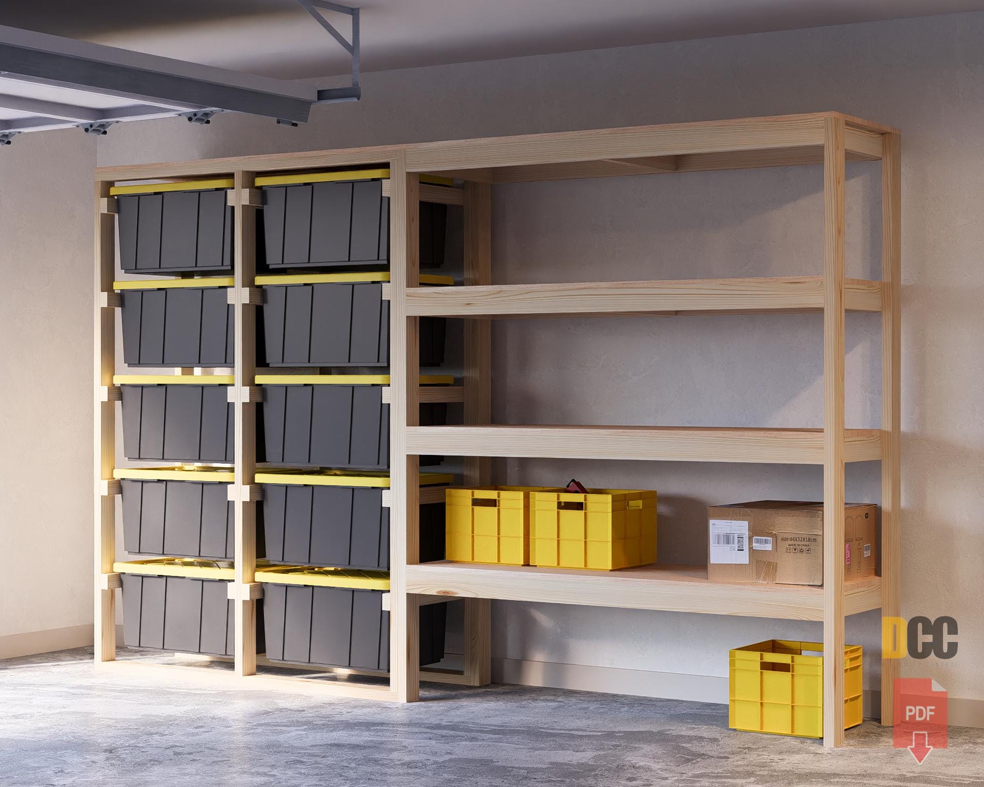 Tote rack with shelf 27 Gallon Storage PDF plan only | DIY garage s...