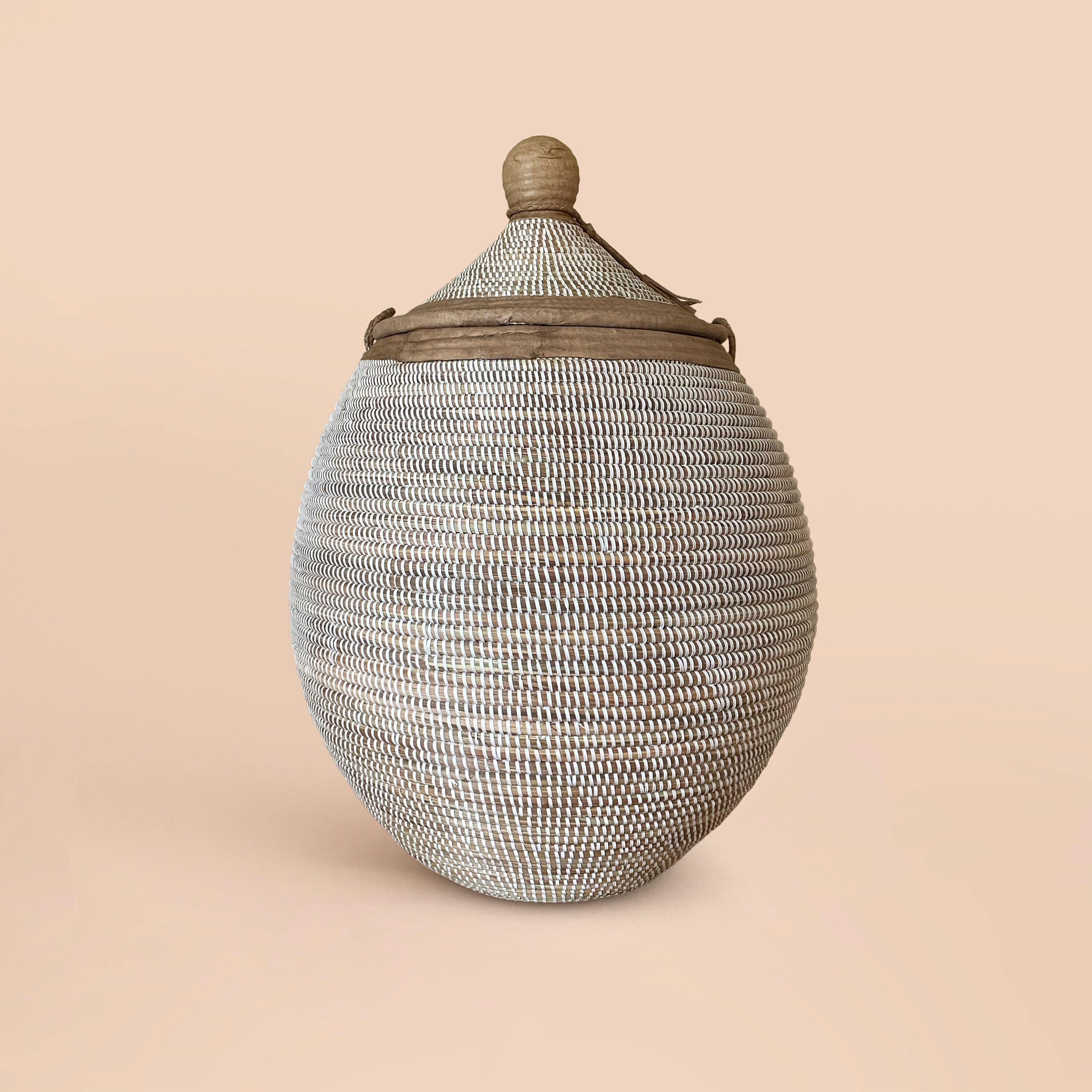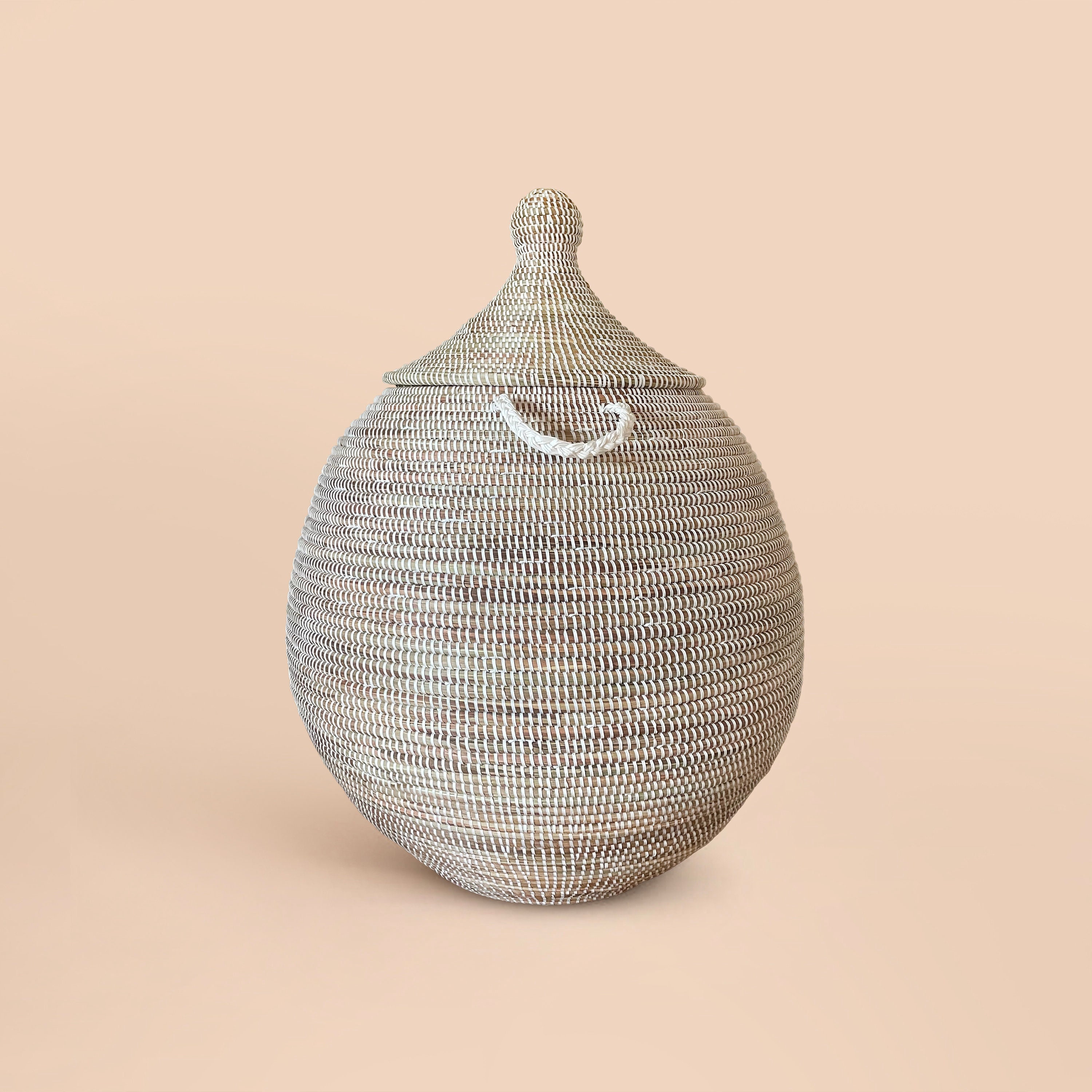 "Handwoven by skilled artisans in Senegal, this stunning basket is crafted using fibers from th...