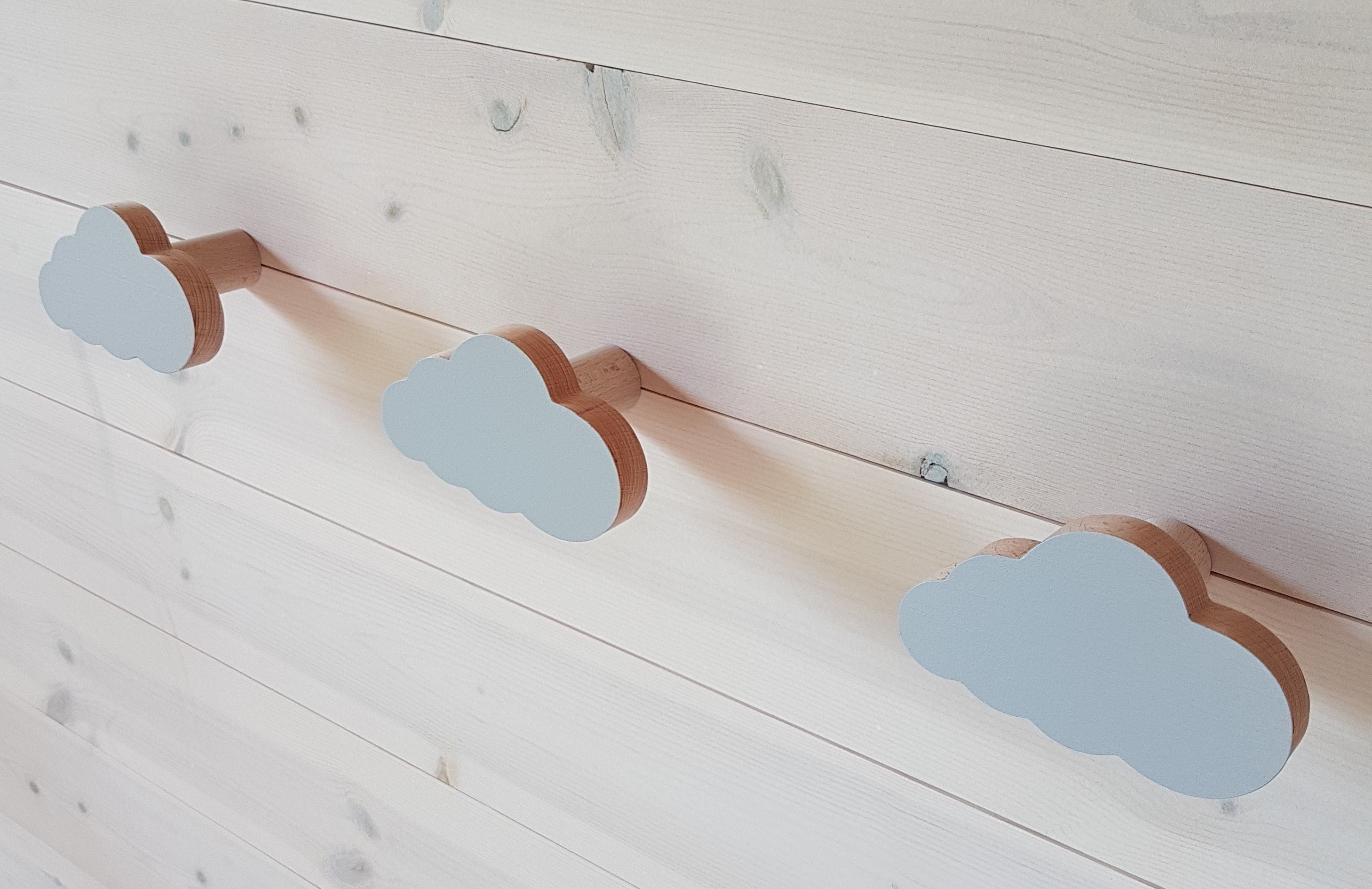 Wooden Hook, Light Grey Cloud Hook, Wall knob, Kid's Room Hooks, Sc...