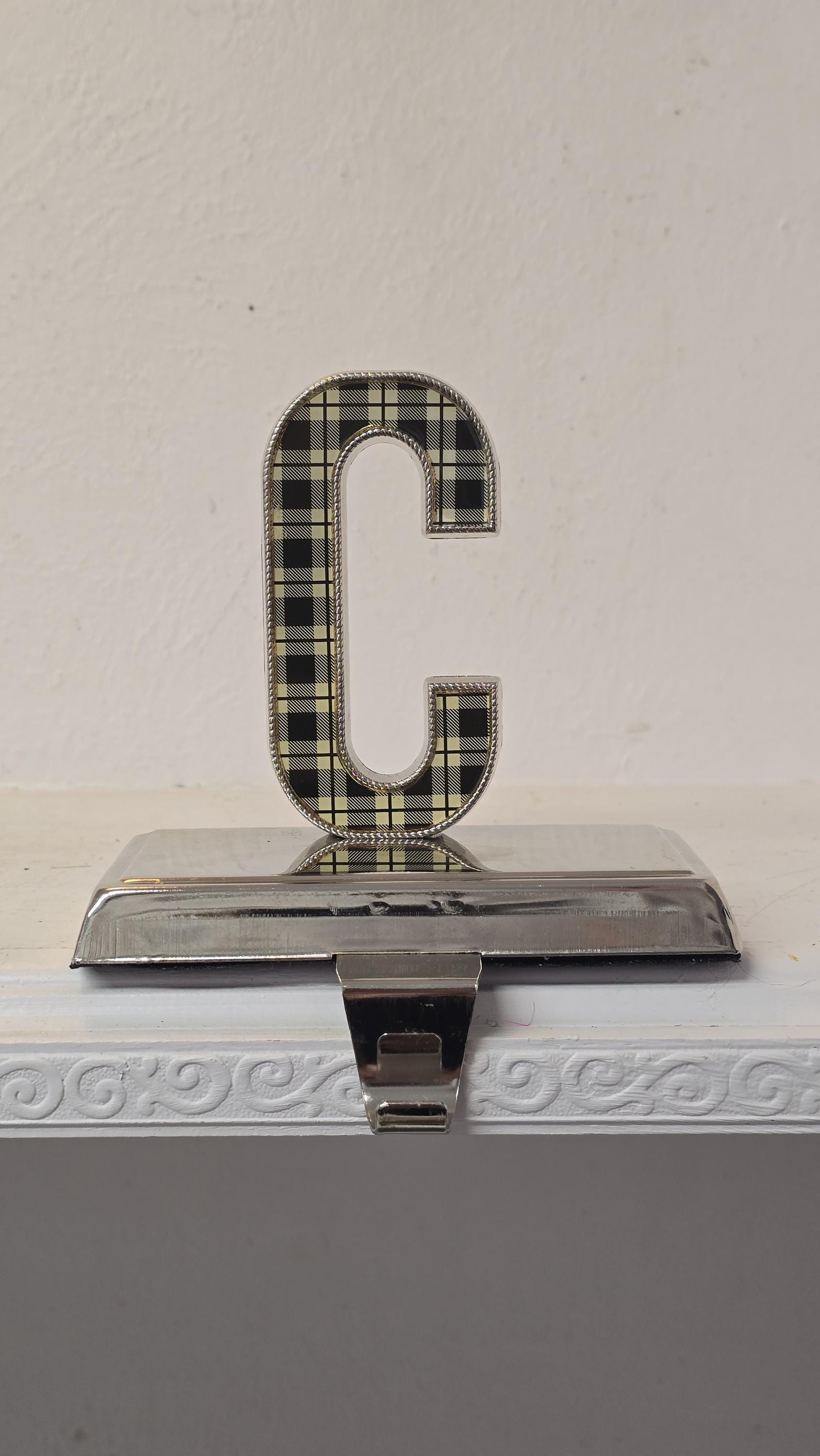 Plaid Letter C Stocking Holder, Metal Mantel Hook, Holiday Decor, C...