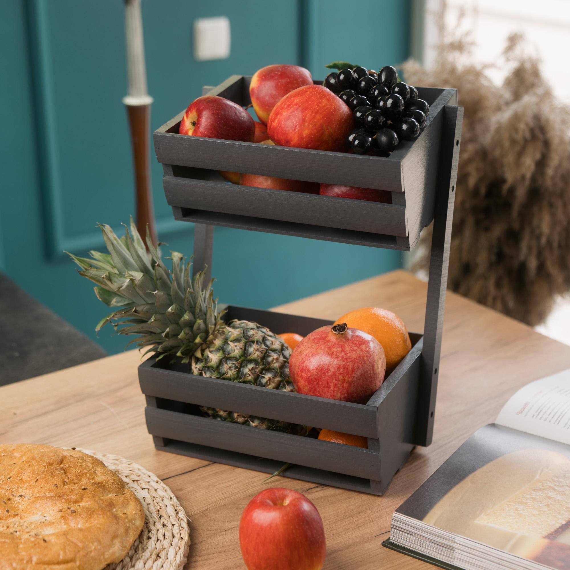 Two Tier Fruit Basket Stand with Open Slat Design, Kitchen Counter ...