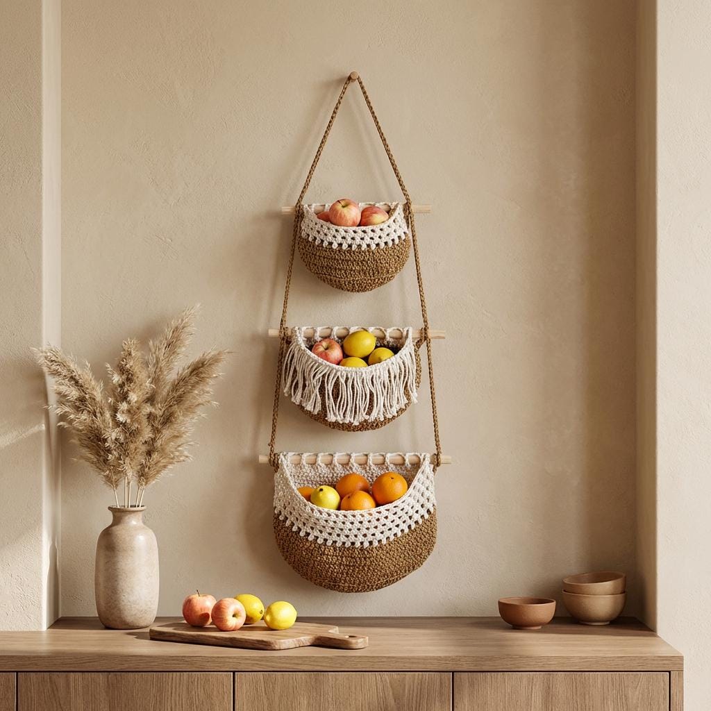 Macramé Wall Hanging Fruit Basket - 3 Tier Kitchen Organizer Bring a touch of natural charm a...