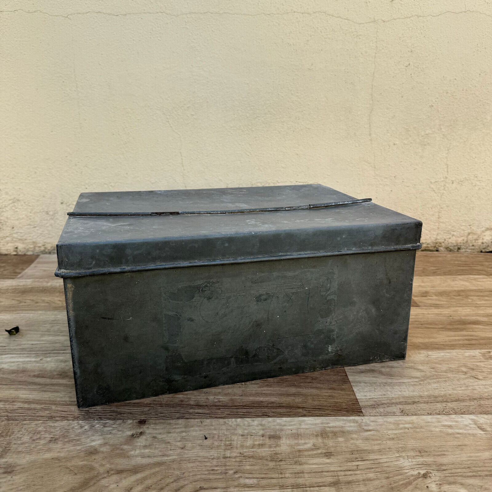 "95 % of my items are tariffs free to US This vintage galvanized metal utility storage case is ...