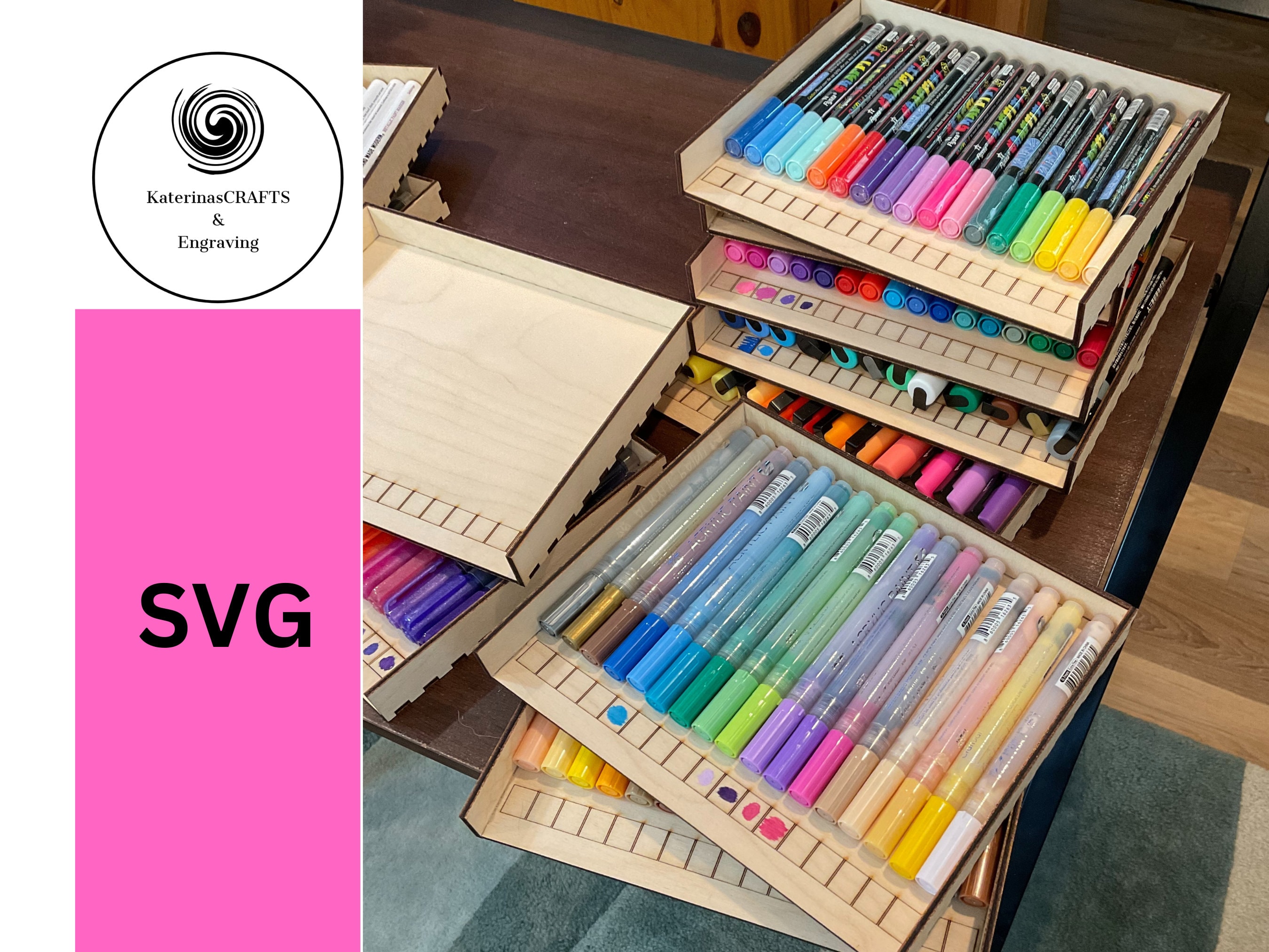 "Paint Pen Storage Box SVG Cut File for 3mm (1/8\") wood One file type Every INSTANT DIGIT...