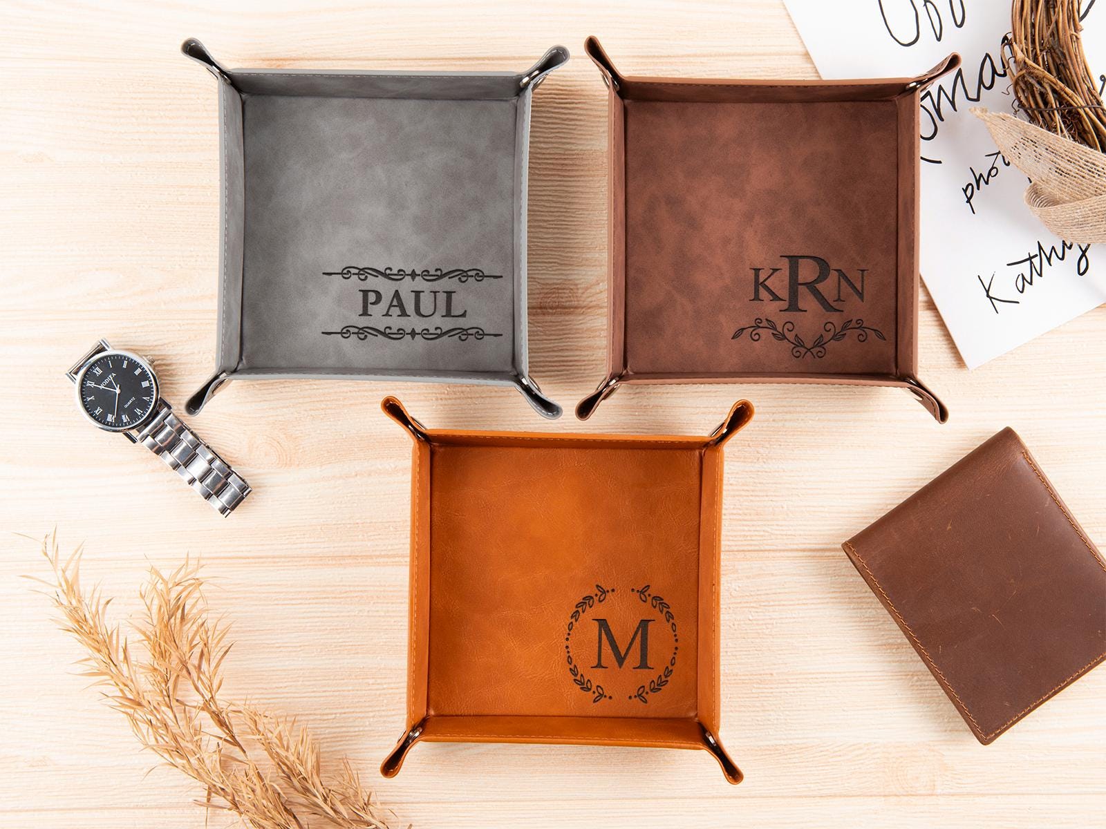 "Custom Leather Valet Tray,Office Organizer, Catch All Tray,Personalized Valet Trays,Jewelry Tr...