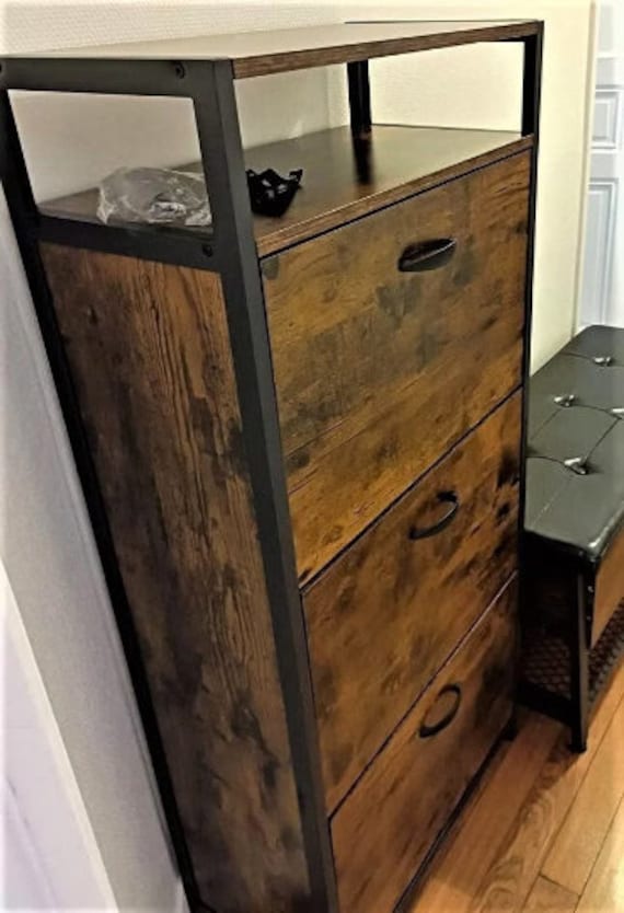 Industrial Shoe Cabinet, Rustic 3 Tier Shoe Rack, Shoe Cabinet With...