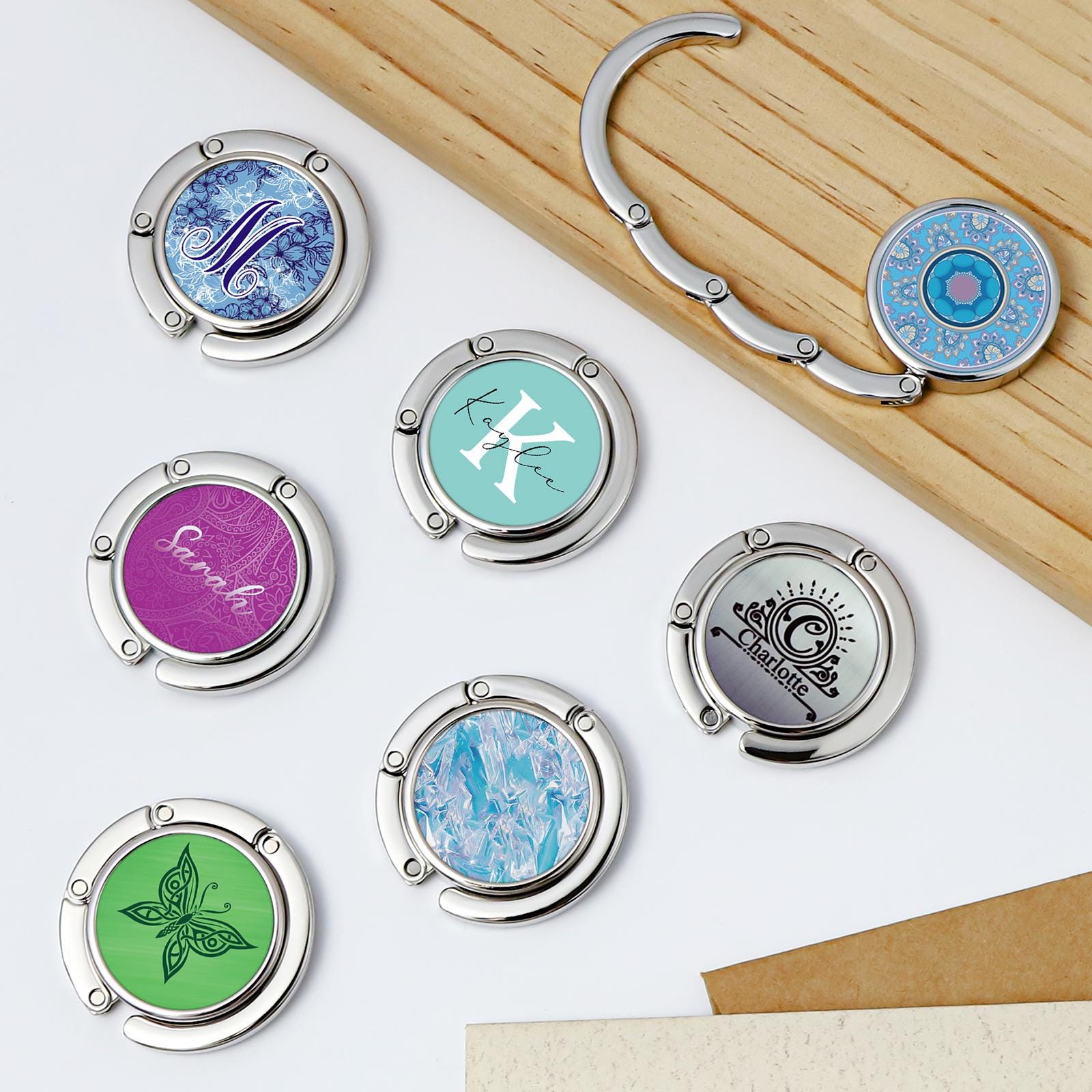 Personalized Bag Hook, Folding Handbag Hook, Bag Hanger Name Design...