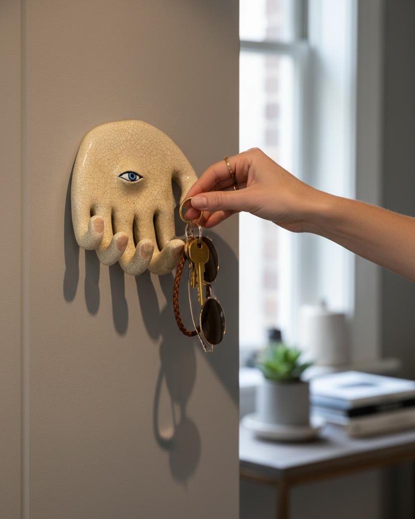 Wall hanging key holder, Art Hand, Handmade Ceramic, Wall Key Holde...