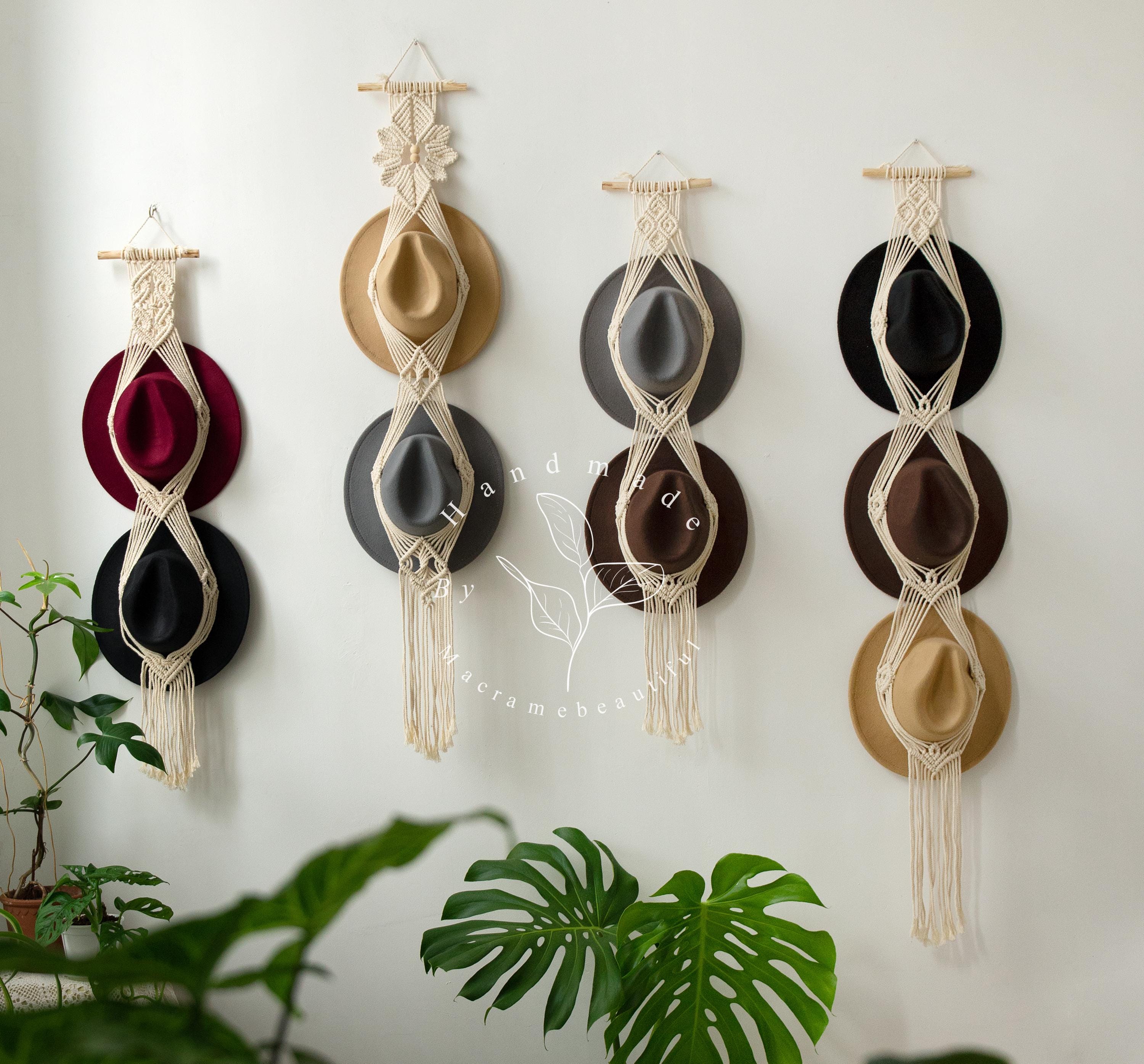 Wall Mount Hat Rack, Snapback Caps Holder, Macrame Hat Holder, Base...
