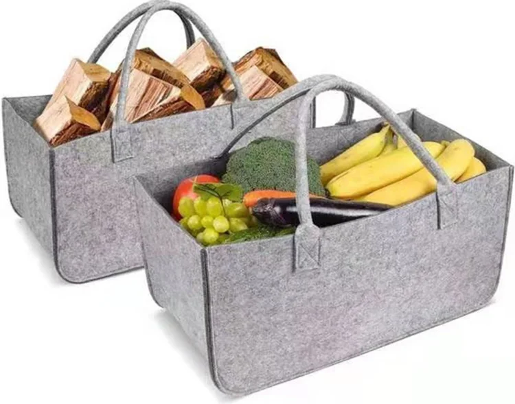 Felt Fireplace Firewood Basket With Carry Handles Portable Wood Car...