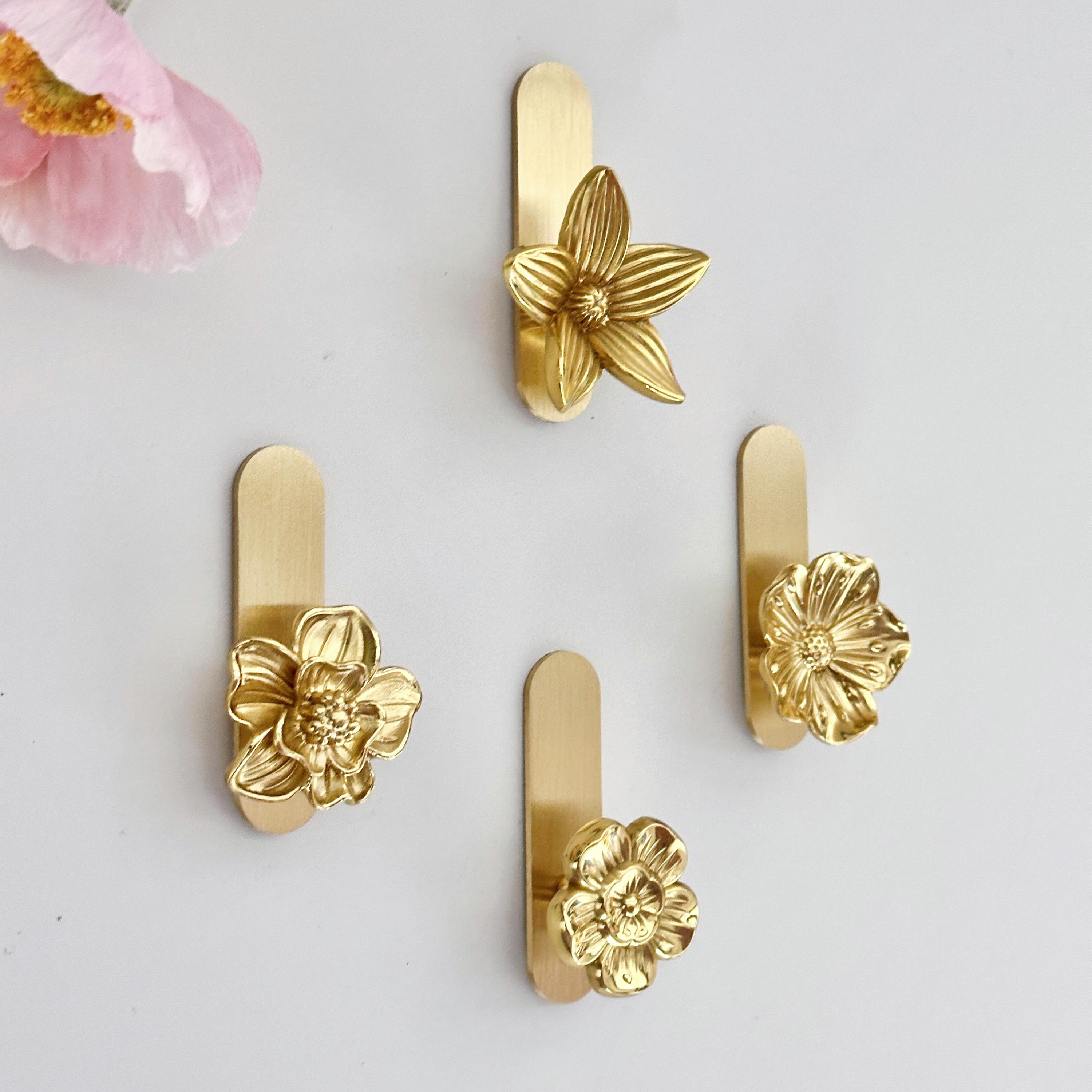 Brass flower adhesive wall Hooks for Bag, Hat,Coat - brass hook Bat...