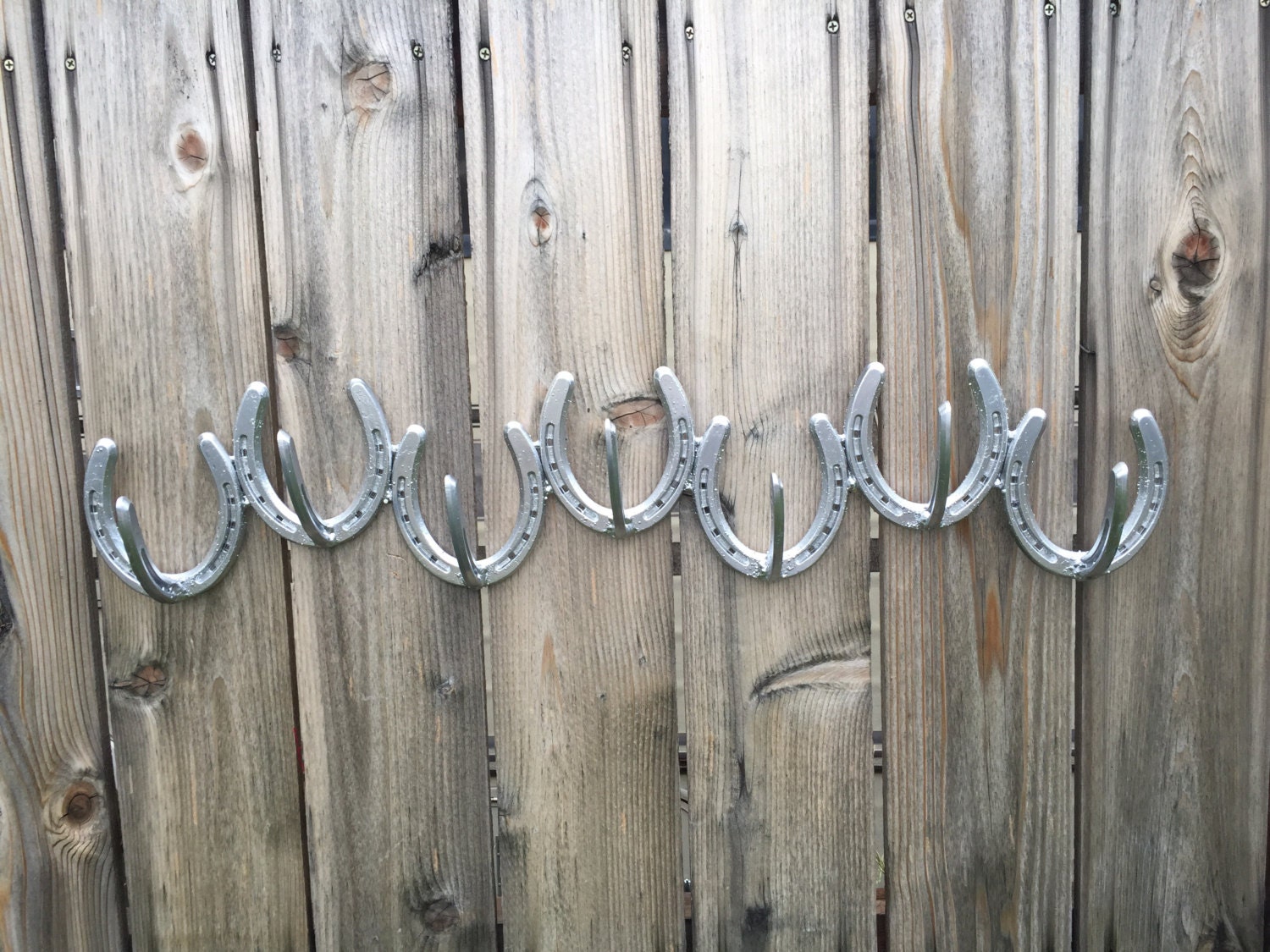 "This horse shoe coat rack has 7 hooks and is 30\" long. It can be used to organize your j...