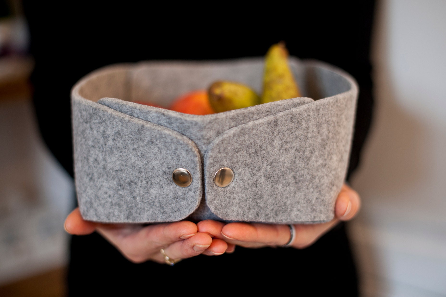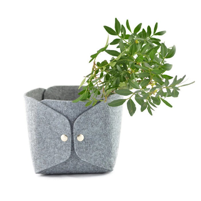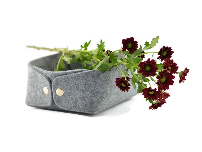 Storage basket, high medium grey felt storage bin, felt bin, bawl, ...